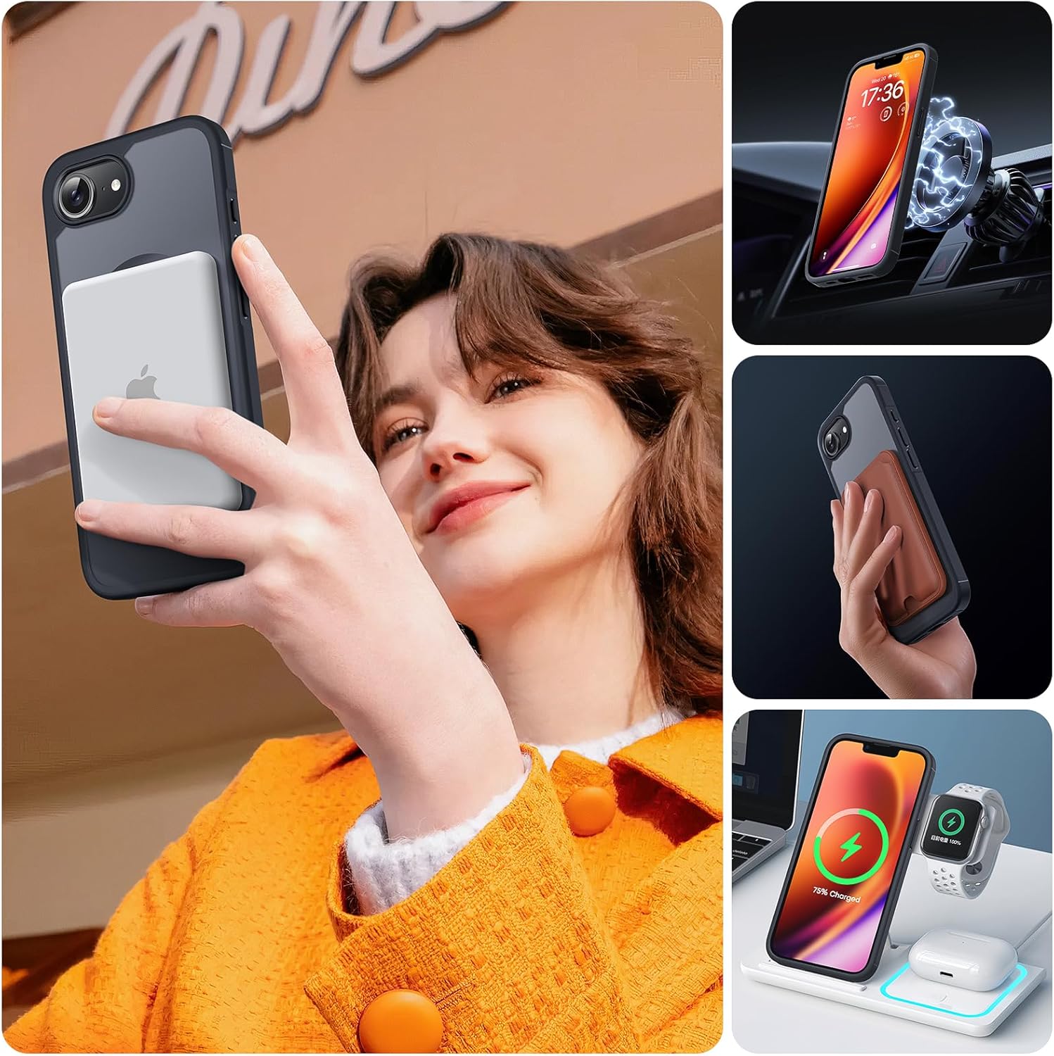 • Вграден магнитен пръстен: Магнитен калъф за iPhone 17 с вграден магнитен пръстен, никога не се разхлабва. Висока сила на задържане 20N за всички магнитни аксесоари. Остава стабилен в стойката за кола дори при тежки, неравни подове.