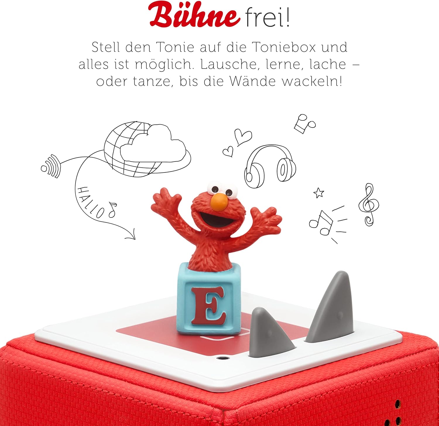 tonies Toniebox Фигурка за слух от „Улица Сезам“ - Елмо, Аудио игра с песни за деца от 3 години, Време за игра приблизително 40 минути