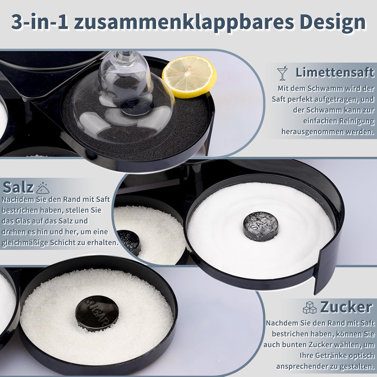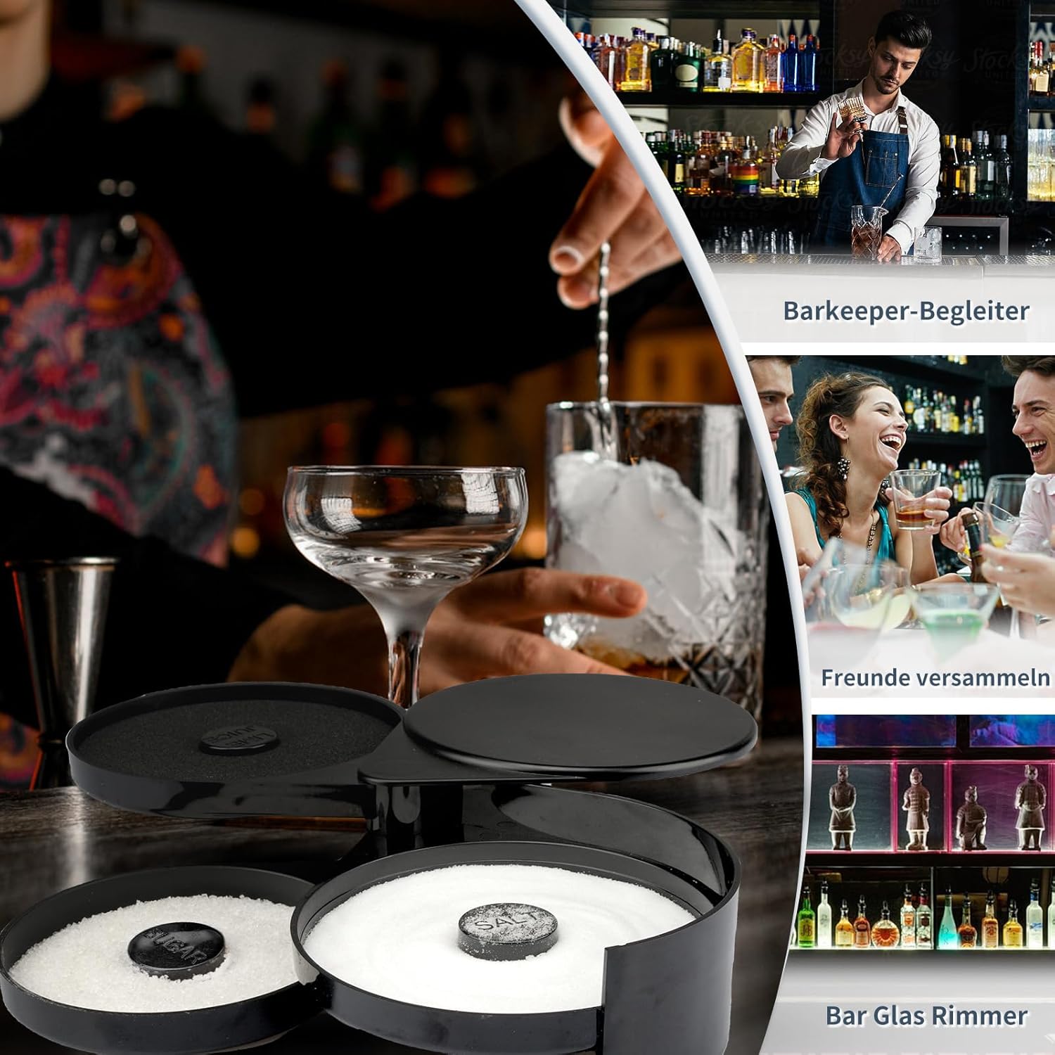 • 【3-степенен отделен дизайн】: Нашата солница за маргарита е с 3-степенен дизайн на отделенията, за да спести място и да държи съставките отделно. Отделните отделения са удобни за добавяне на сол, захар, сок от лайм или други съставки, от които може да се нуждаете.