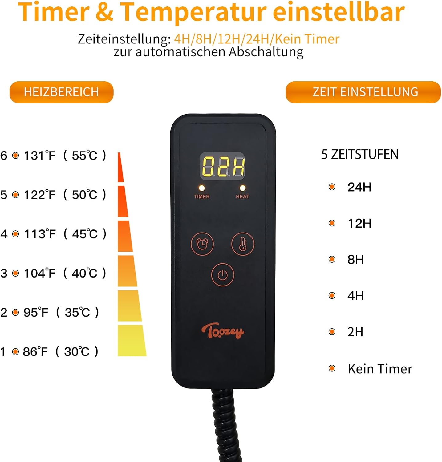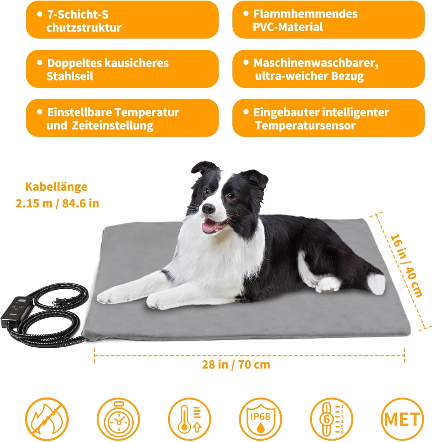 • Безопасна двойна застраховка: 7-слойна защитна структура с UL одобрен нагревателен проводник. Освен това, нагревателният проводник е покрит с проводник за измерване на температурата, така че нагревателната постелка за домашни любимци се изключва автоматично, стига предпазителят да се нагрее до над 55° (131°F) на едно място. Много по-безопасно е от регионален сензор.