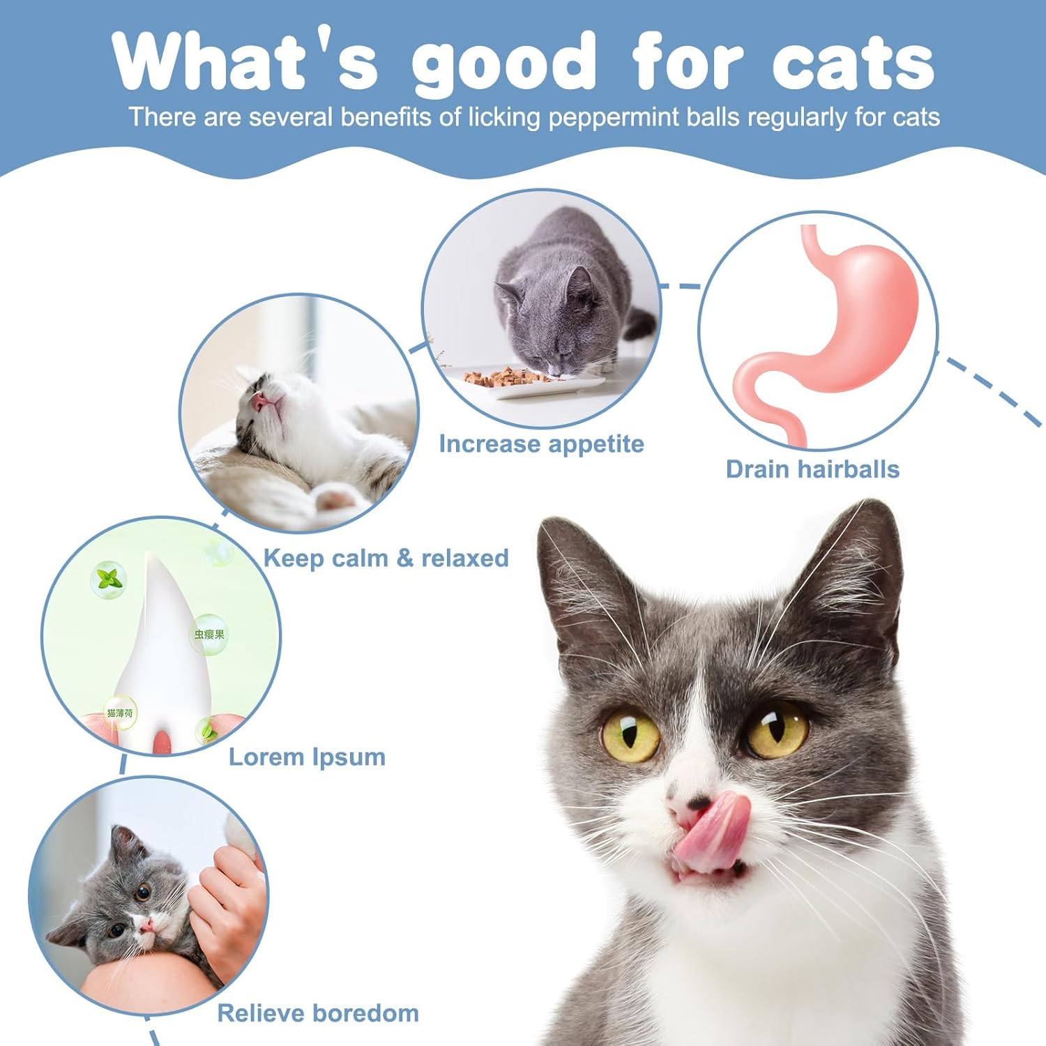 Играчката за котки съдържа малко количество естествена котешка трева, която може да понижи настроението на котката, да премахне скуката и да ѝ донесе щастие.