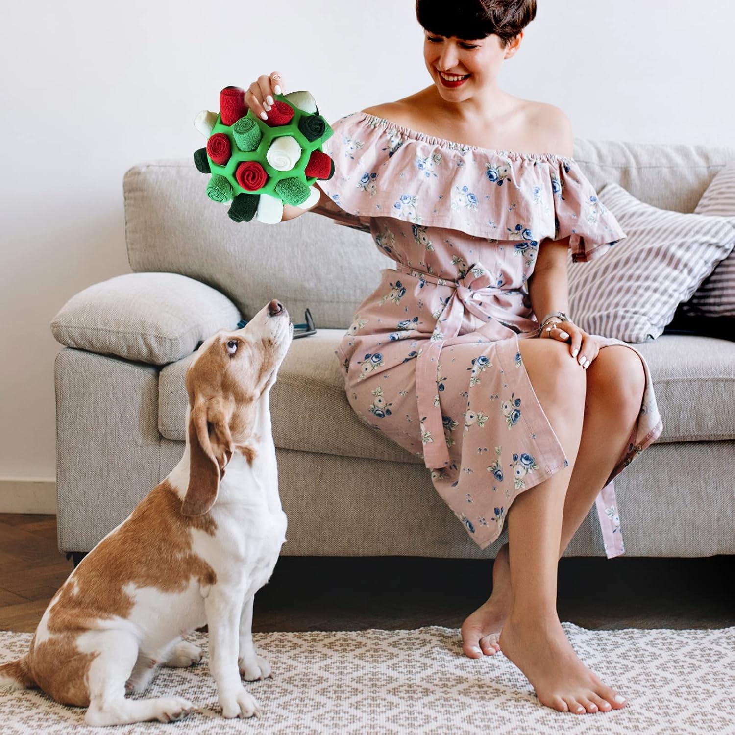 Топка за смъркане за кучета, играчка за смъркане за килим, интерактивна играчка за кучета, преносима играчка за смъркане за малки, средни кучета, домашен любимец (зелена Коледа)