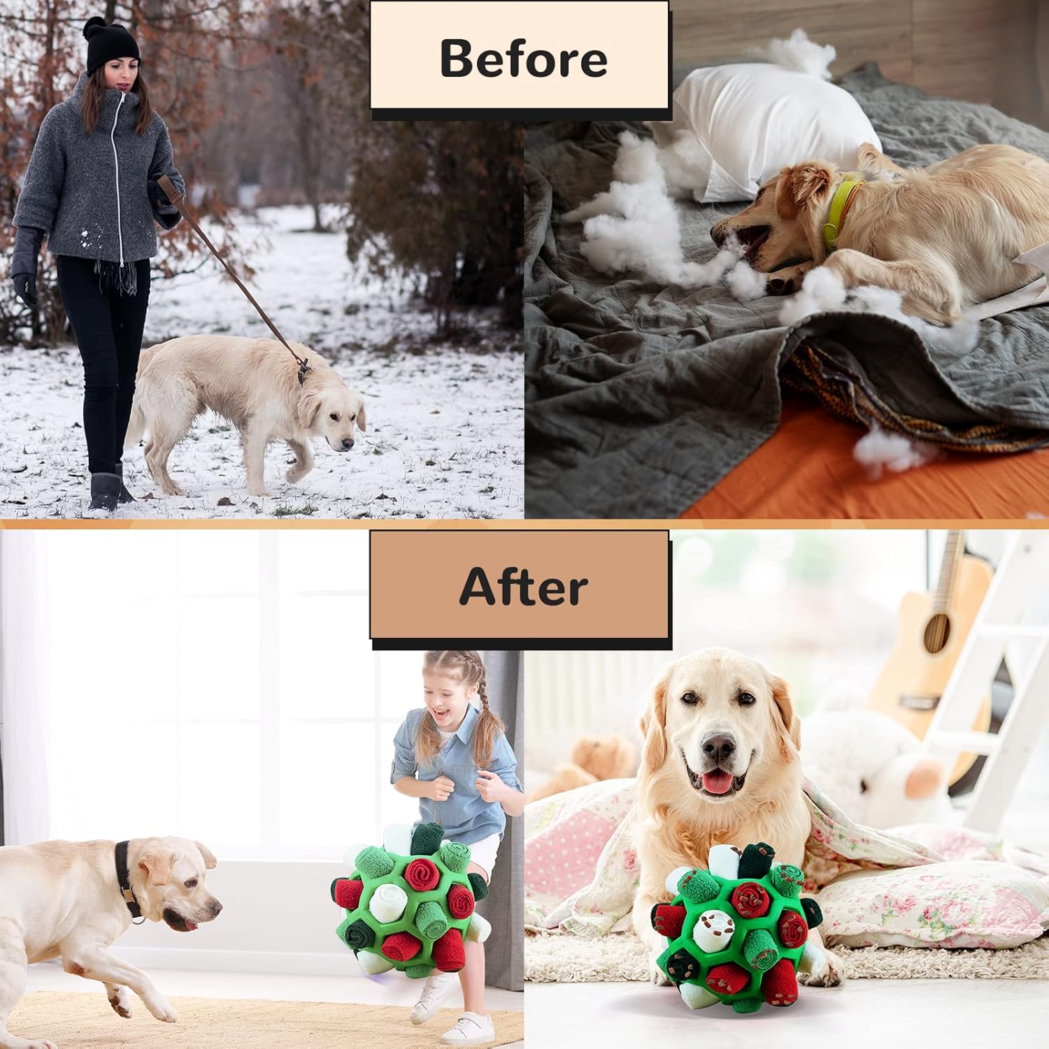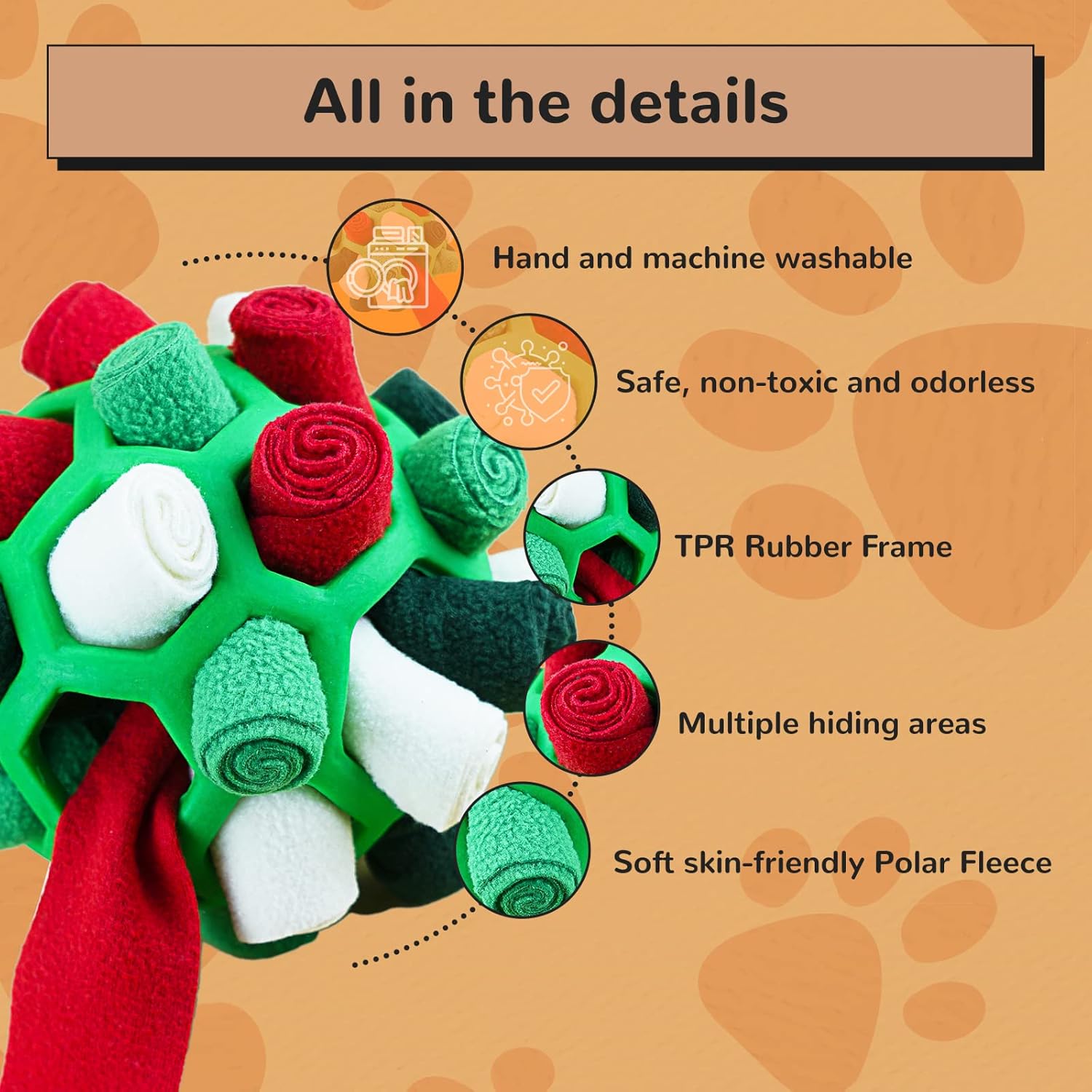 • Добрият партньор на домашния любимец: Тази играчка за душене на домашни любимци може да помогне на кучета, които не са тренирани дълго време, да облекчат стреса, да облекчат тревожността от раздяла на кучето и да разсеят вниманието му от предметите у дома. Сигурен съм, че вашето куче ще я хареса.