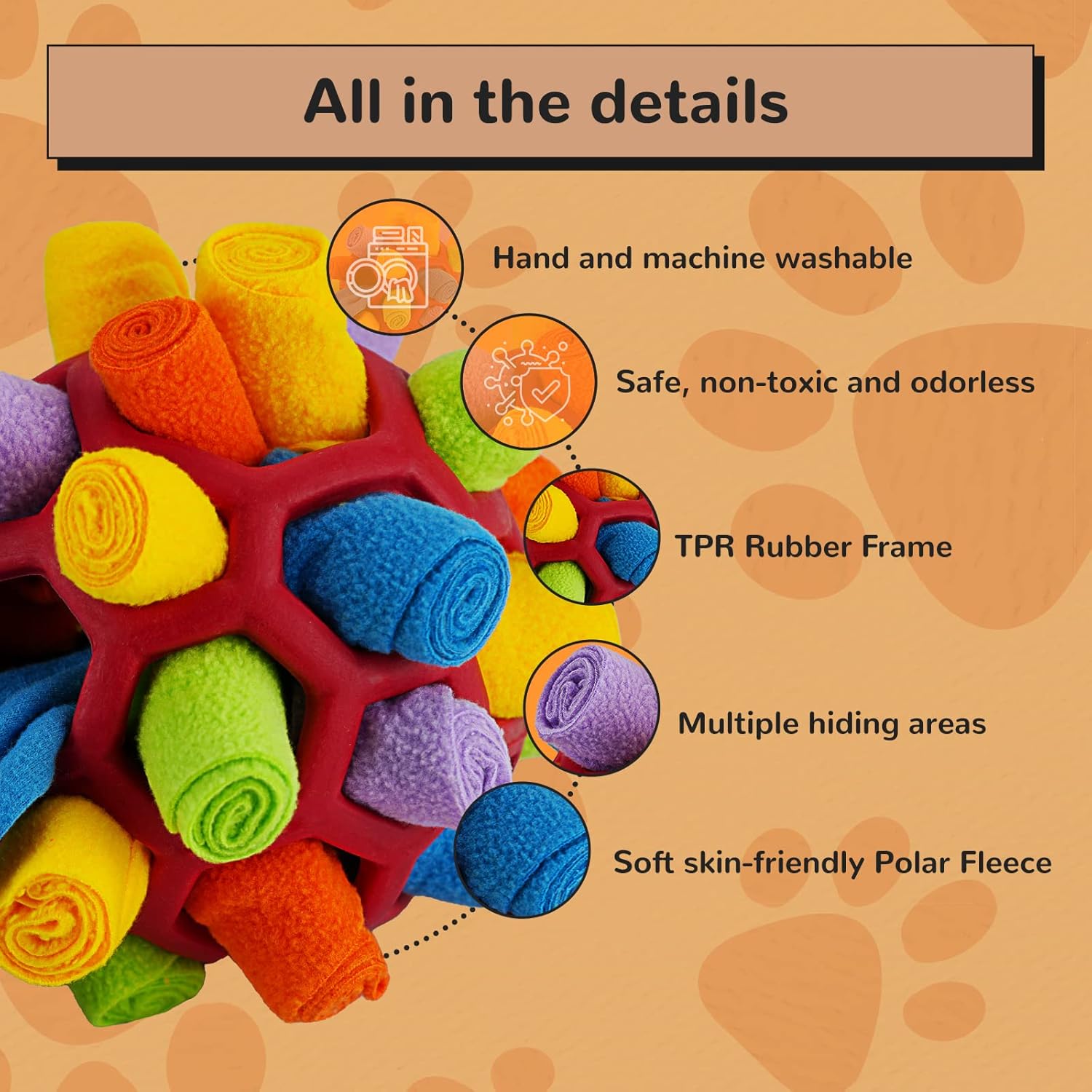 • Добрият партньор на домашния любимец: Тази играчка за душене на домашни любимци може да помогне на кучета, които не са тренирани дълго време, да облекчат стреса, да облекчат тревожността от раздяла на кучето и да разсеят вниманието му от предметите у дома. Сигурен съм, че вашето куче ще я хареса.