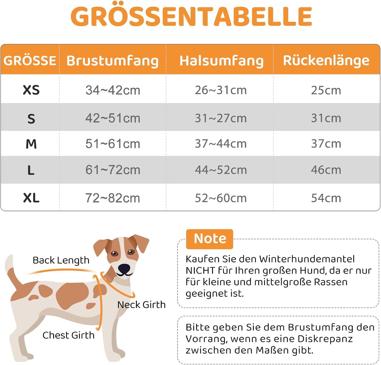 • Топло зимно палто за малки и средни кучета: Предлагаме ултра топло палто за малки кучета в малки, средни и големи размери; то е удобно и се регулира; налични са размери от XS до L; нашият размер може да се различава от размера, който вашият домашен любимец обикновено носи; моля, прочетете нашата таблица с размери, преди да изберете размер.