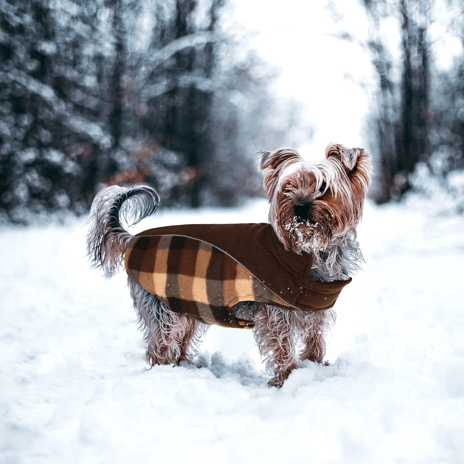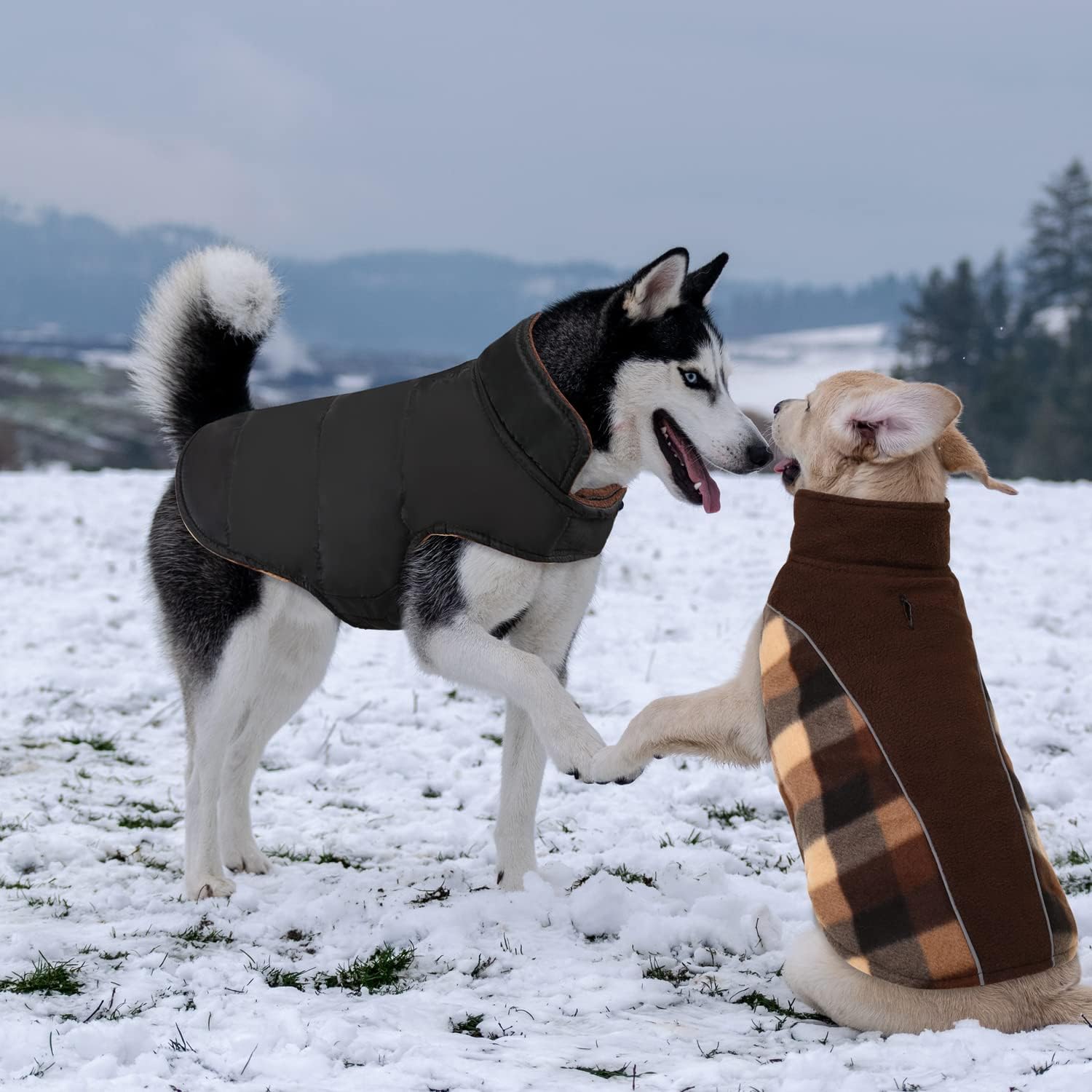 • Топло и водоустойчиво палто: Това зимно палто за кучета се състои от три слоя: слоя полар - интелигентна комбинация от класически шотландски и черен цвят; слоя полиестер - водоустойчив и ветроустойчив; и слоя пълнеж от памук. Това топло, леко, практично и издръжливо палто ще държи кучето ви топло през цялата зима.