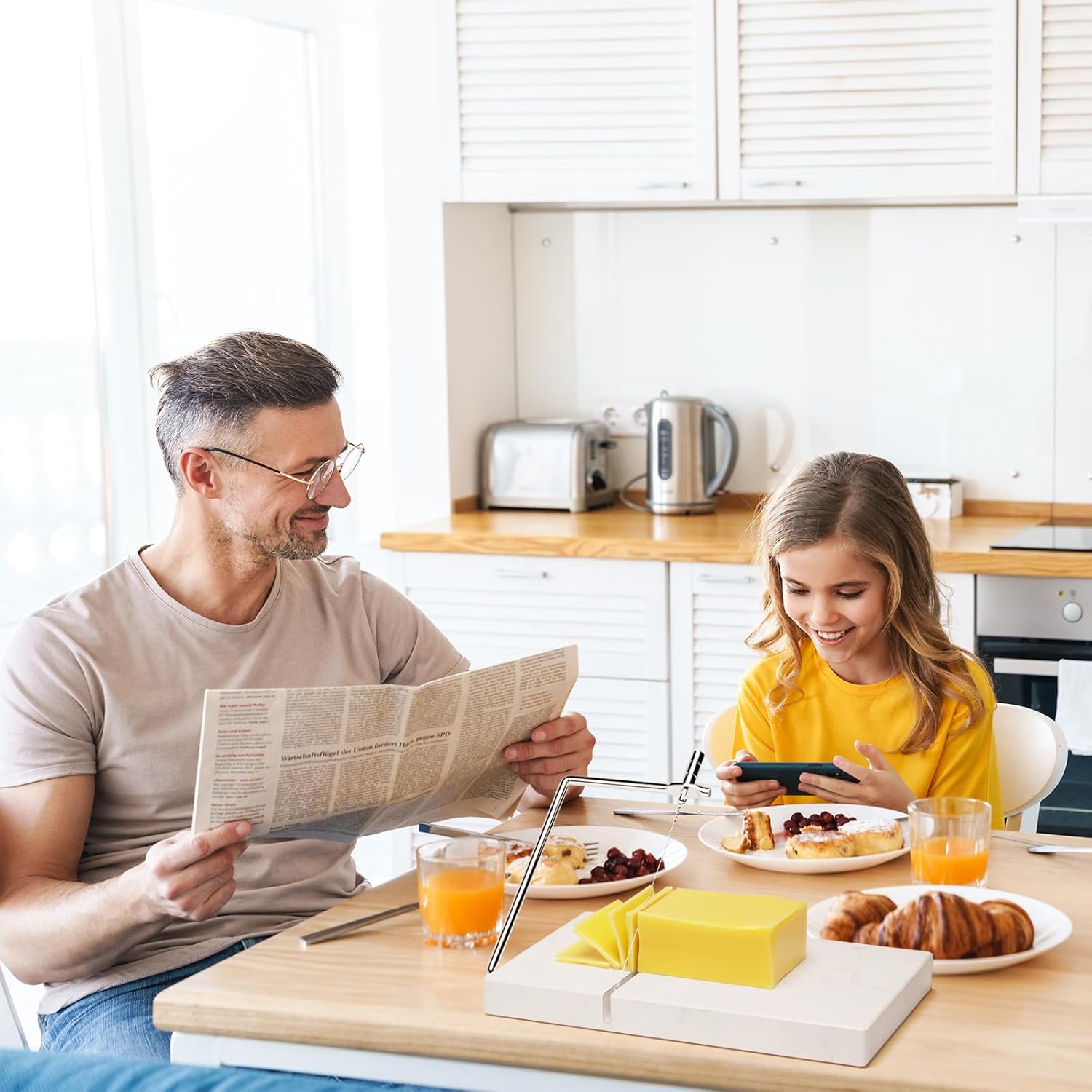 • Лесно рязане на сирене с мраморна резачка за сирене: Направете перфектни резени от любимото си сирене с нашата първокласна мраморна резачка за сирене. Изработена от 100% естествен мрамор, тя има незалепващи свойства за лесно отделяне на храната и безпроблемно почистване. Резачката за сирене е оборудвана и с четири противоплъзгащи силиконови подложки на дъното за стабилност и безопасност.