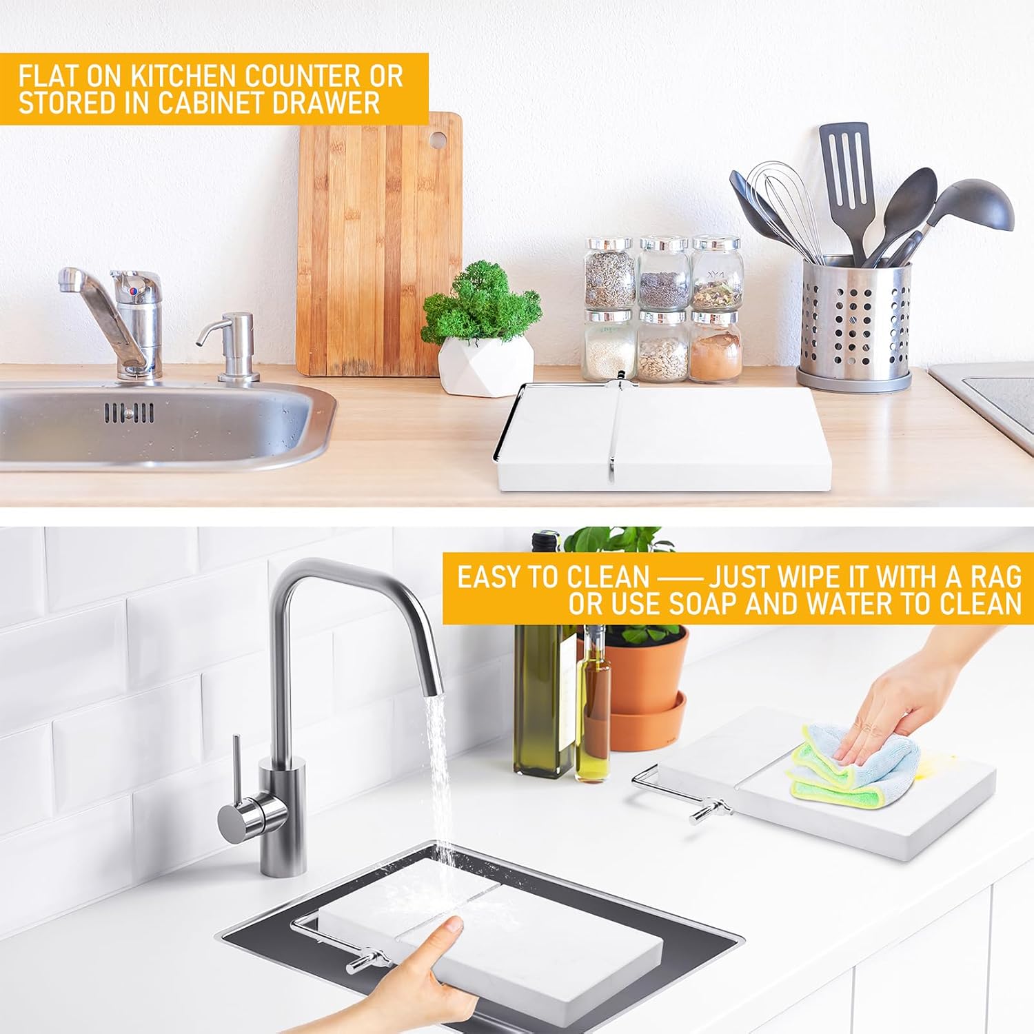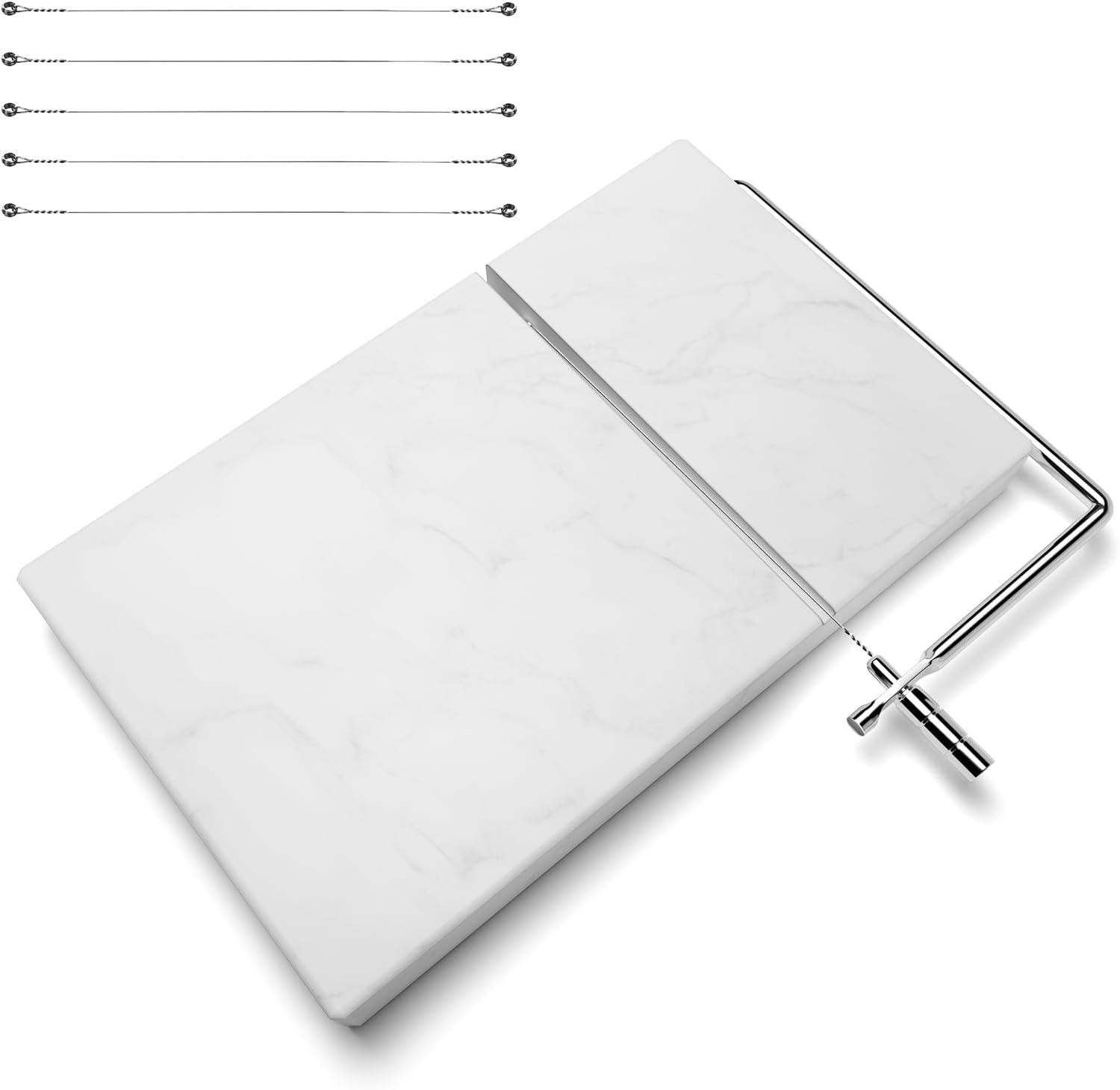 TOPULORS Резачка за сирене и мраморна дъска за рязане с 5 екстра дебели режещи жици от неръждаема стомана - 20,3 x 12,7 см Здрава резачка за сирене за блокове сирене и масло, Kitchen Aid - Бяла