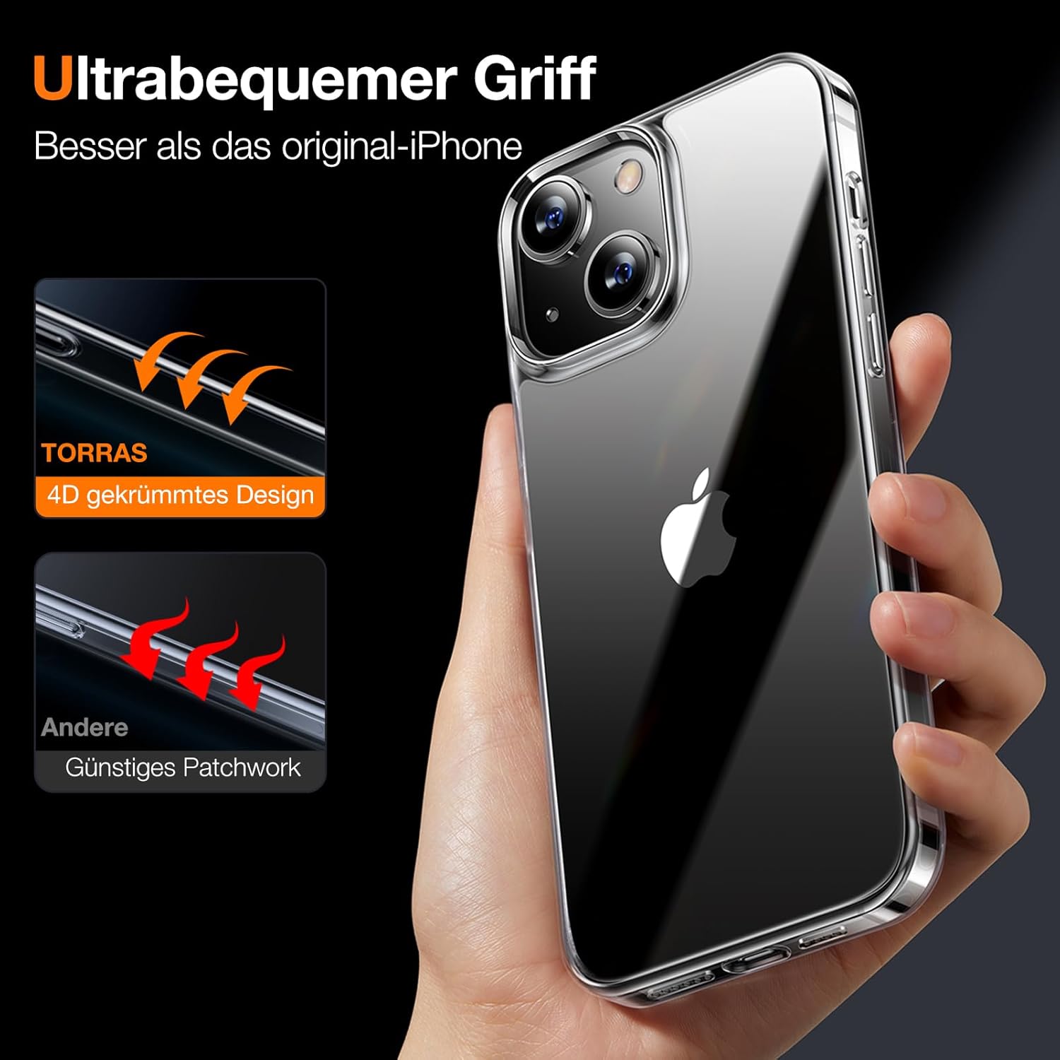 TORRAS 2025 Ултра тънък калъф за iPhone 13, всестранна защита, отлично кадифено захващане, тънък като оригиналния калъф за мобилен телефон за iPhone 13, защитен калъф за iPhone 13, прозрачен