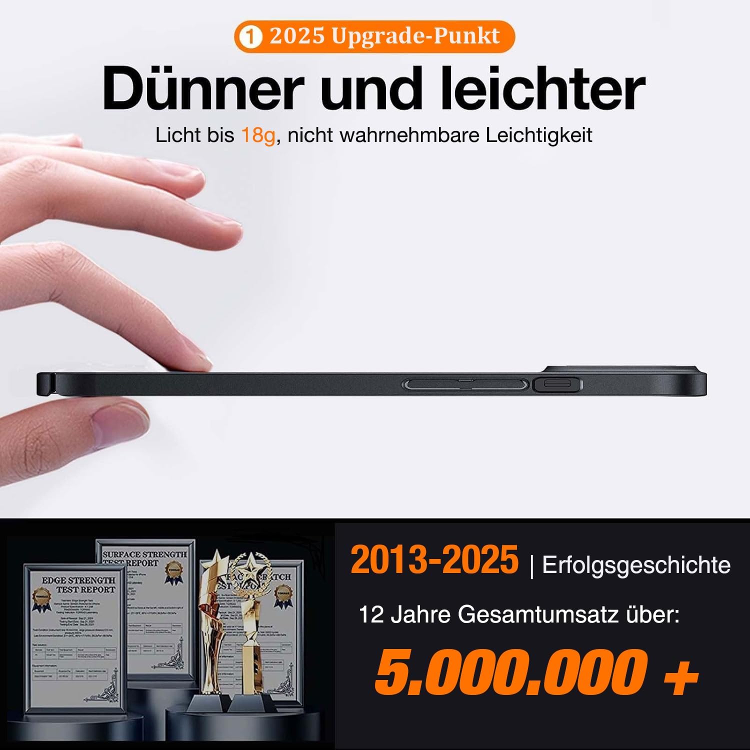 • Класическа серия, най-добрият избор: Калъфът за iPhone 16 е резултат от 12 години упорит труд и иновации и е ненадминат лидер в ултратънките калъфи. С дебелина от само 0,07 см, той е изключително лек - едва 18 г. Калъфът пасва перфектно на iPhone, предлага достатъчна защита и е похвален от над 5 милиона потребители. С 98% процент на повторно закупуване, той е първият избор за поколения потребители на iPhone.