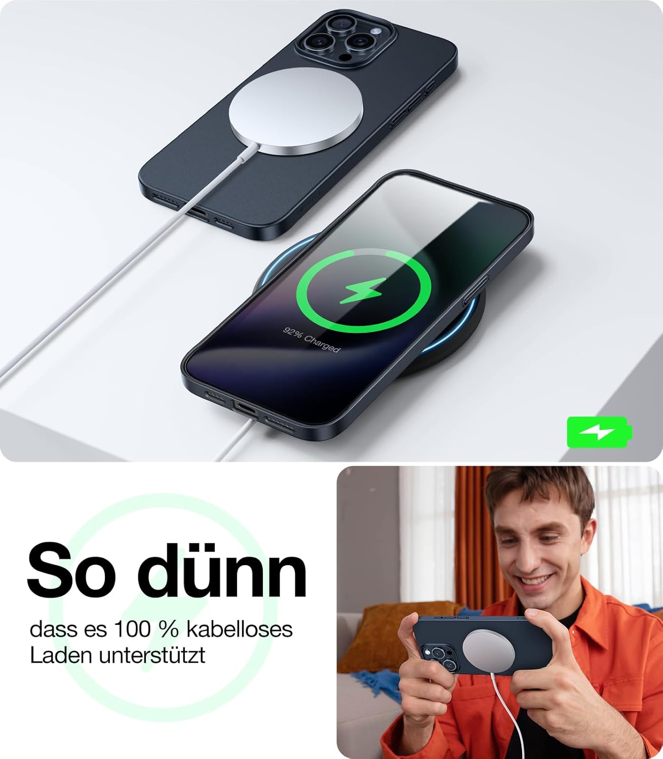• Ултра тънък, без напрежение: Този калъф за iPhone 16 използва ексклузивен процес на лазерно рязане, за да постигне тънкост от 0,7 мм. Той е толкова тънък и лек, че максимално запазва оригиналната изящност и деликатност на iPhone. Лек захват, без напрежение: Защитният калъф за iPhone 16 е изработен от безопасен и естествен материал със сертификат RoHS, който защитава не само вашия iPhone, но и вашето здраве.