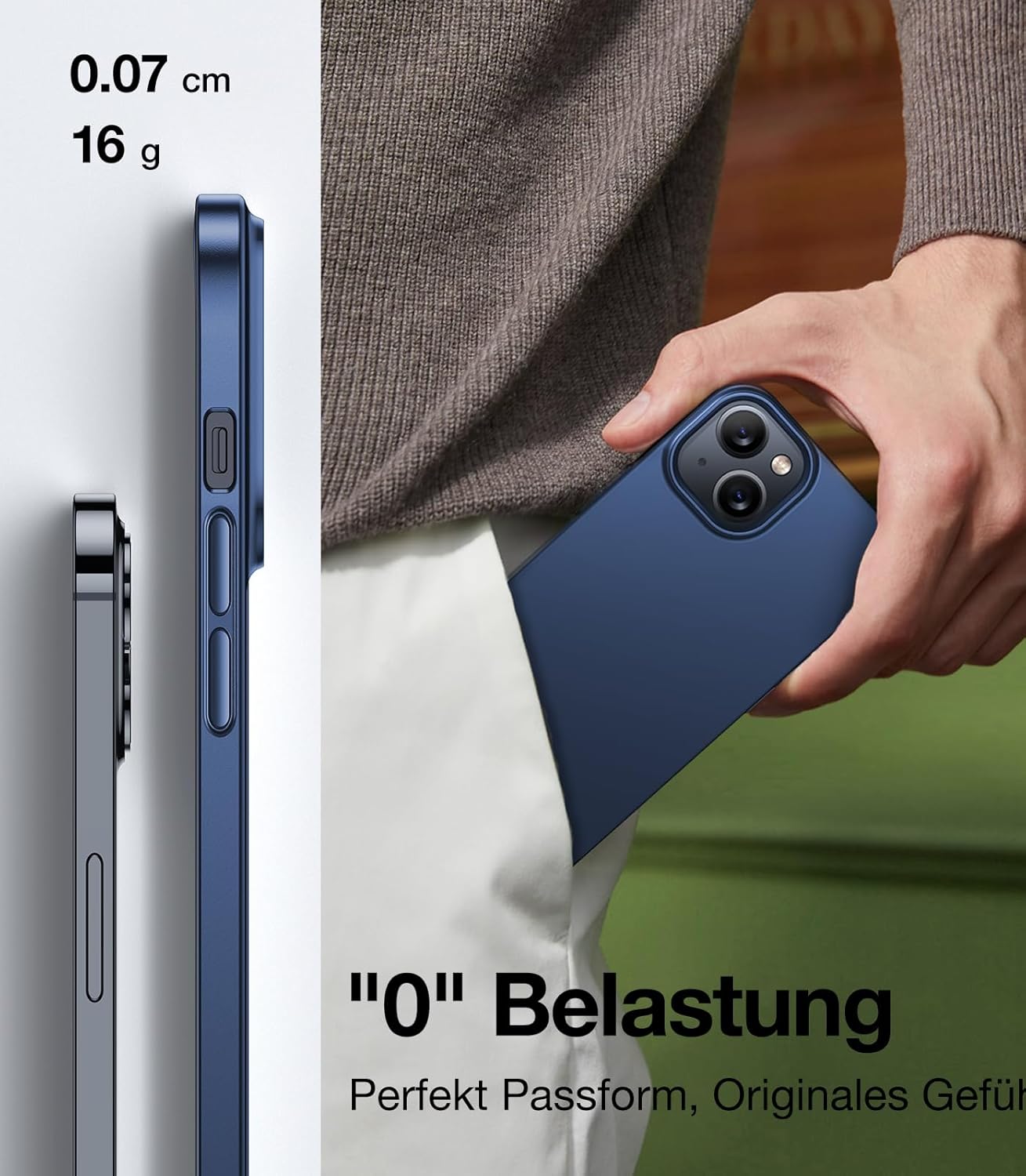 • Ултра тънък, без напрежение: Този калъф за iPhone 16 използва ексклузивен процес на лазерно рязане, за да постигне тънкост от 0,7 мм. Той е толкова тънък и лек, че максимално запазва оригиналната изящност и деликатност на iPhone. Лек захват, без напрежение: Защитният калъф за iPhone 16 е изработен от безопасен и естествен материал със сертификат RoHS, който защитава не само вашия iPhone, но и вашето здраве.