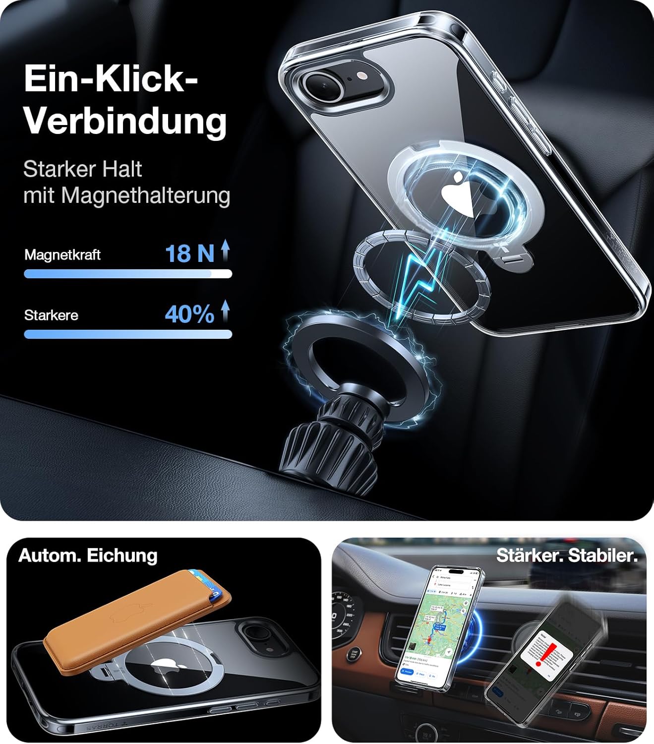 • Затворено: Силен магнитен пръстен, бързо зареждане: Невидим О-пръстен с вграден магнит, изработен от най-добрия материал N56 с технология Halbach, калъфът за iPhone 17 осигурява силна магнитна сила от 18 N за превъзходна здравина и стабилност. Лесно свържете калъфа си към стойката за кола MagSafe за стабилна навигация. Насладете се на безпроблемна и сигурна връзка!
