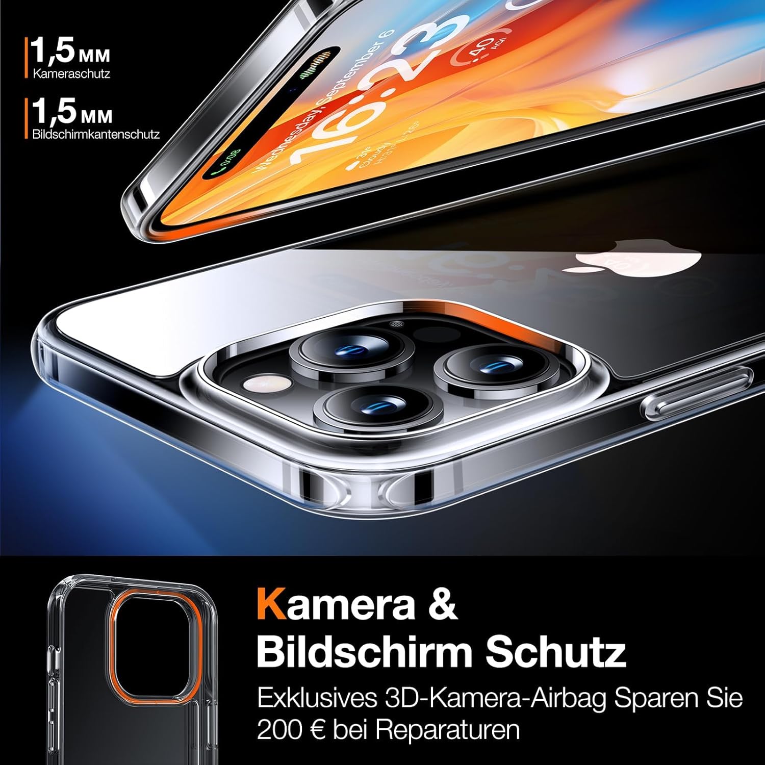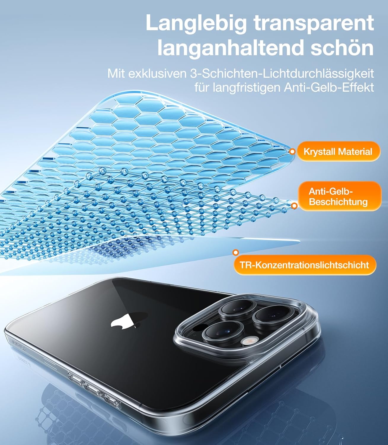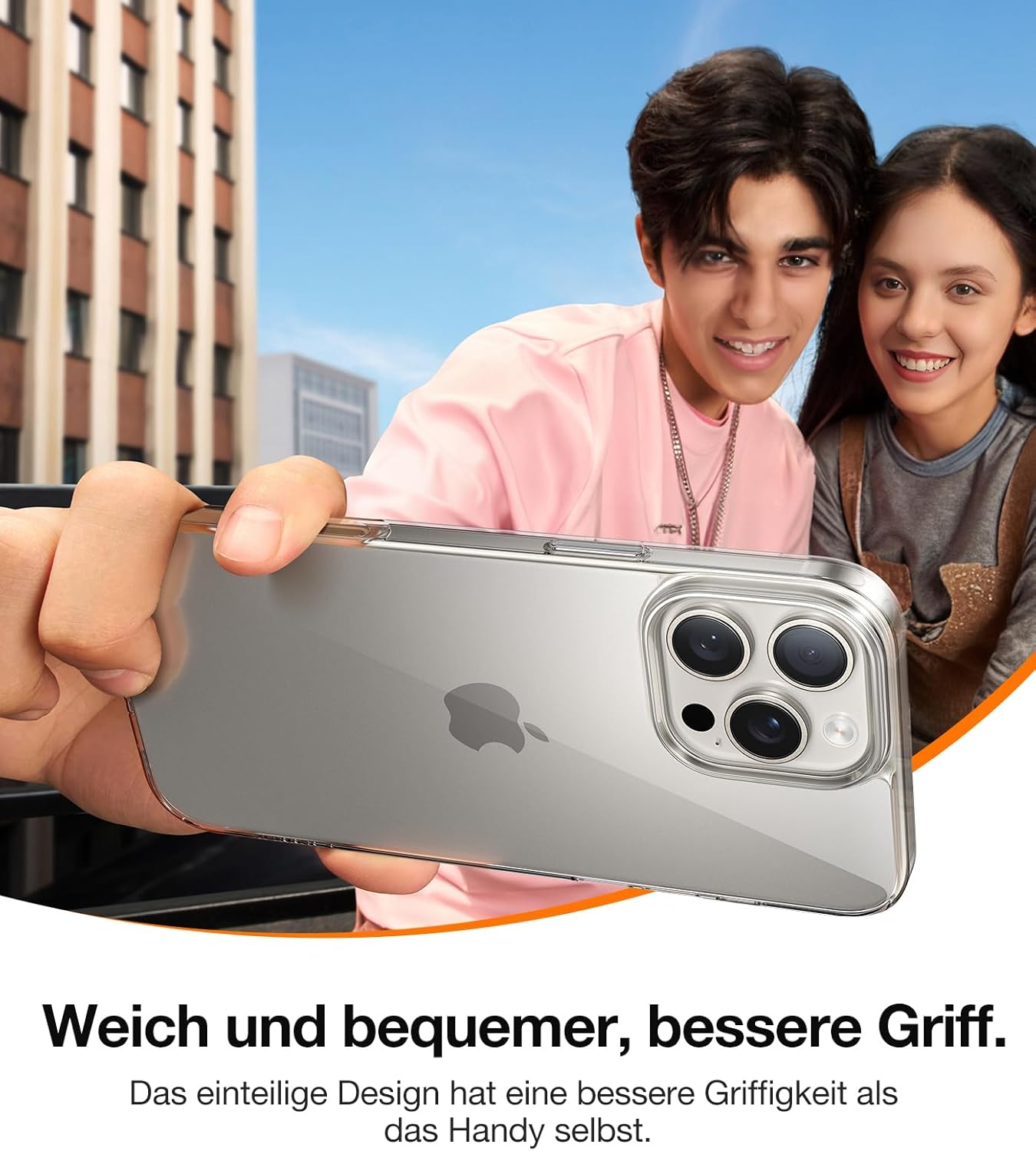 • Безупречна кристална яснота: Този калъф е специално проектиран за iPhone 16 Pro и винаги остава кристално прозрачен. Избрахме висококачествен силиконов материал, който обгръща вашия iPhone 16 Pro като втора кожа и перфектно подчертава оригиналния цвят и тънките линии на iPhone. Така можете да се насладите напълно на красотата на оригиналния дизайн на вашия телефон.