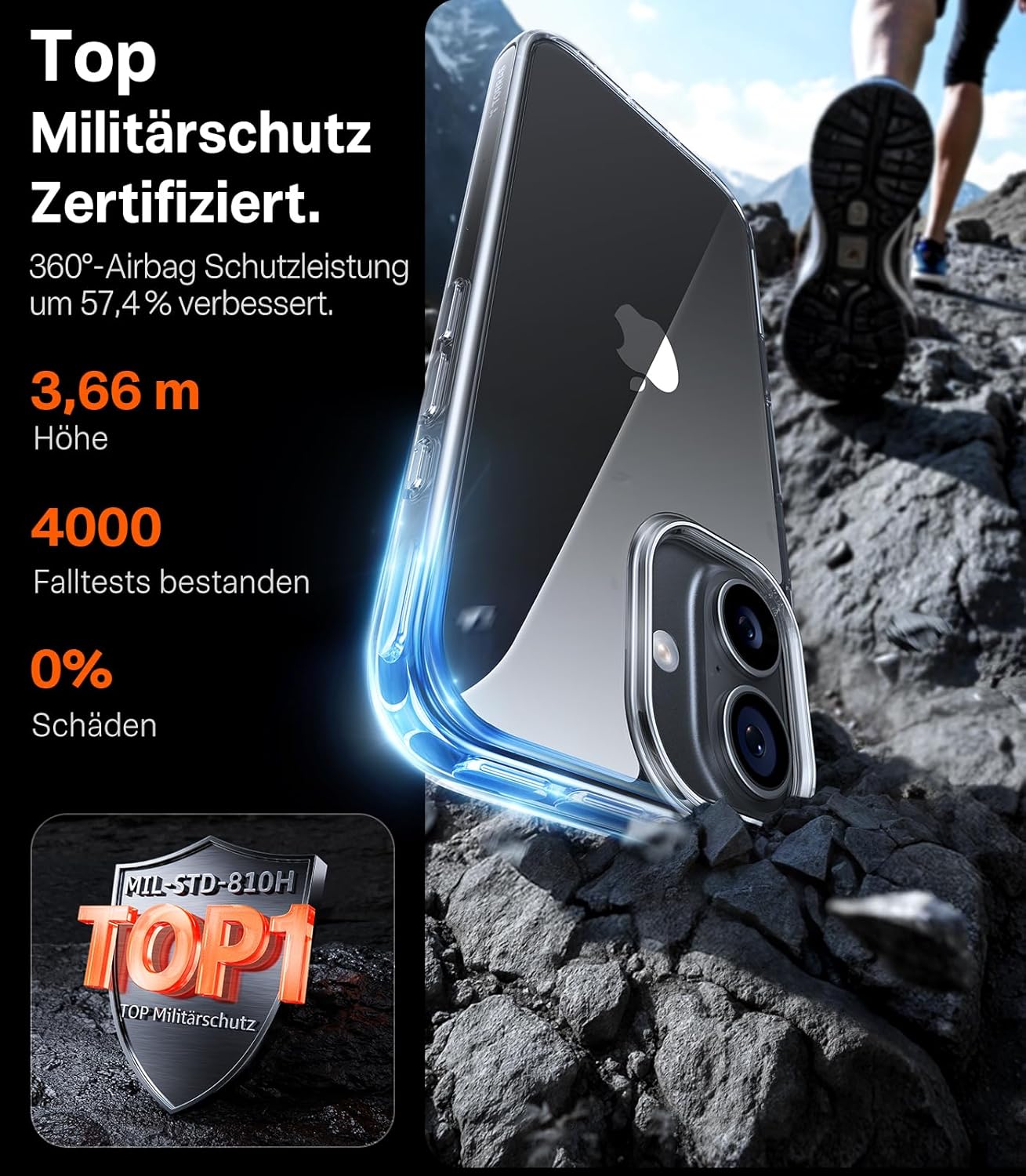 • Цялостна защита на най-високо ниво: TORRAS Guardian защитава вашия iPhone от повреди в случай на падане от всички посоки - дори при екстремни условия. Кейсът за iPhone 17 Pro е преминал теста за падане SGS и с височина на падане от 3,66 м счупи предишния рекорд от 2,44 м. Над 4000 теста за падане от 26 различни ъгъла - устройството е останало непокътнато. Изработен от материали за екипировка за защита на ски, с вградена 360° въздушна възглавница, той предлага цялостна защита.