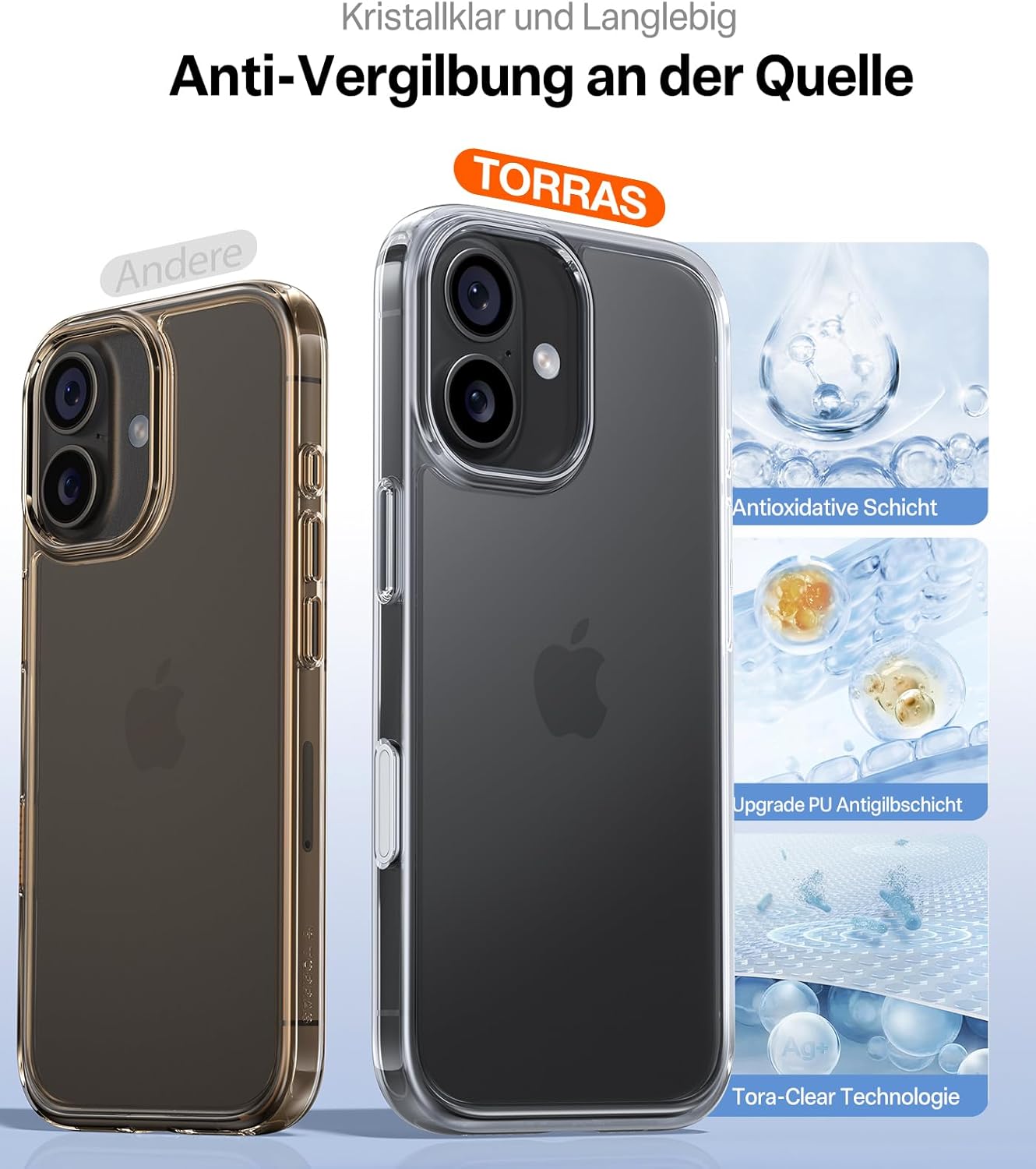 TORRAS Diamond калъф за iPhone 17 [Най-висока военна защита] с бутон на камерата, никога пожълтяващ защитен калъф, удароустойчив и устойчив на надраскване, прозрачен калъф за мобилен телефон за iPhone 17