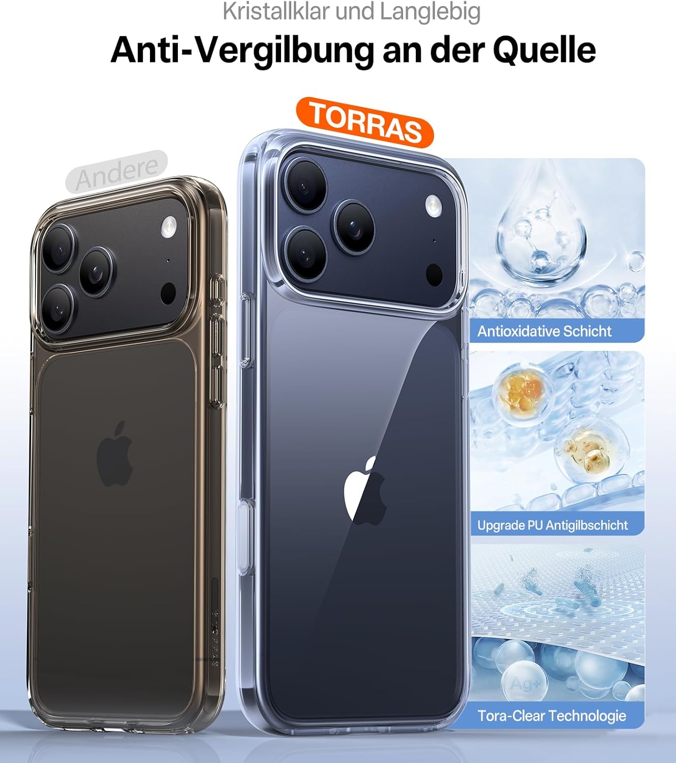TORRAS Diamond калъф за iPhone 17 Pro [Най-висока военна защита] с бутон на камерата, никога пожълтяващ защитен калъф, удароустойчив и устойчив на надраскване, прозрачен калъф за мобилен телефон за iPhone 17 Pro