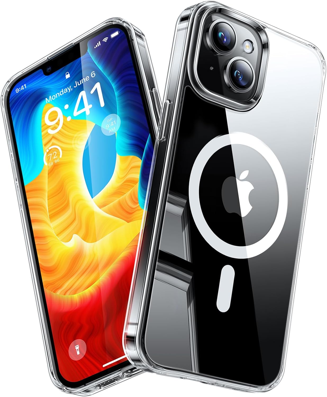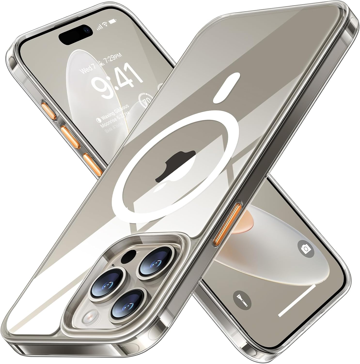 TORRAS Diamond-Mag калъф за iPhone 15 с MagSafe (сертифицирана магнитна сила и защитна сила) калъф за iPhone 15, устойчив на надраскване, тънък, против пожълтяване, с „направи си сам“ копчета, прозрачен