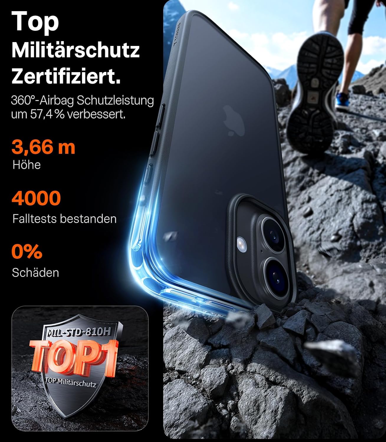 • Цялостна защита на най-високо ниво: TORRAS Guardian защитава вашия iPhone от повреди в случай на падане от всички посоки - дори при екстремни условия. Кейсът за iPhone 17 Pro е преминал теста за падане SGS и с височина на падане от 3,66 м счупи предишния рекорд от 2,44 м. Над 4000 теста за падане от 26 различни ъгъла - устройството е останало непокътнато. Изработен от материали за екипировка за защита на ски, с вградена 360° въздушна възглавница, той предлага цялостна защита.