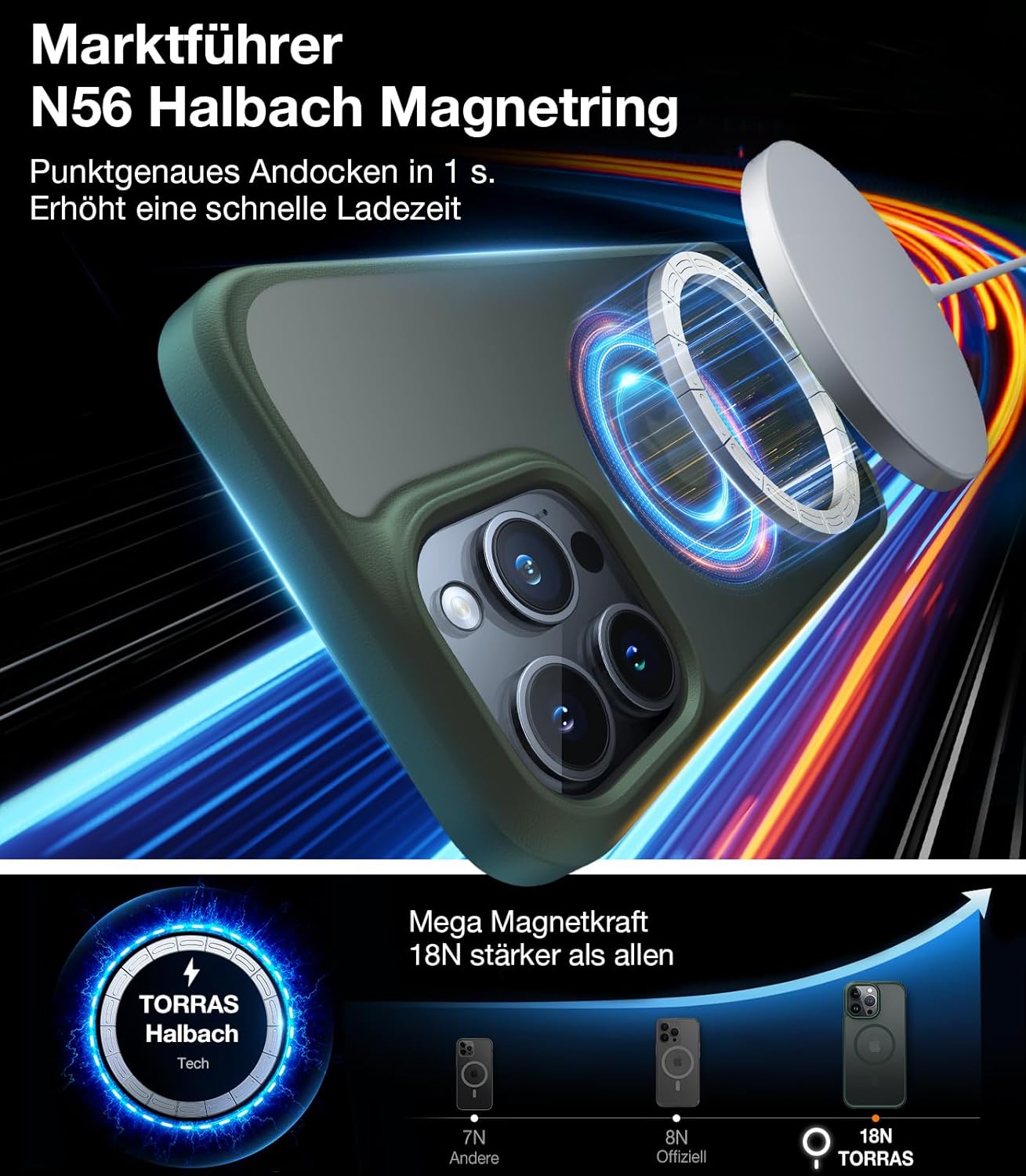• Серията TORRAS Guardian-Mag – индустриалният еталон с над 13 милиона продажби по целия свят: Версията за iPhone 17 Pro съчетава три революционни основни технологии: редкоземни магнити N52 с водеща в индустрията сила на задържане от 18 N; система Military Airbag 4.0 + иновативен термопластичен полиуретанов (TPU)/термопластичен еластомер (TPE), сертифициран за защита от падане от 4 м; немски прецизен дизайн: ултратънък полупрозрачен гръб с дебелина 1,1 мм с G3 нано-захващащи ръбове за перфектно усещане.
