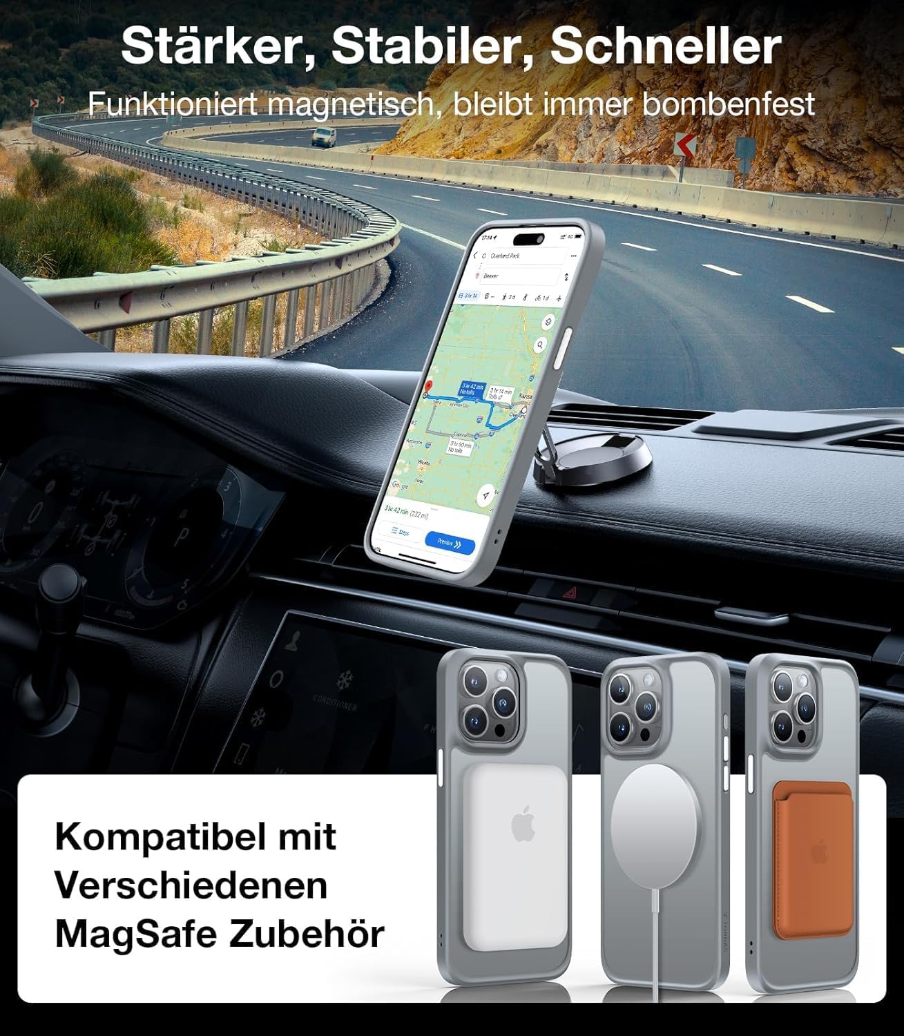 • Професионалното магнитно решение: Пробив в магнитната сила: Надстройте до редкоземни магнити N52 със сила на залепване от 18 N – надвишава оригиналната производителност; Интелигентно управление на заряда: Патентованата конструкция на магнитното поле намалява загубата на енергия с 15% при безжично зареждане и минимизира генерирането на топлина; Надеждна връзка: Перфектна съвместимост със зарядни устройства MagSafe, стойки за кола и други – за сигурно задържане в ежедневието и при пътуване.