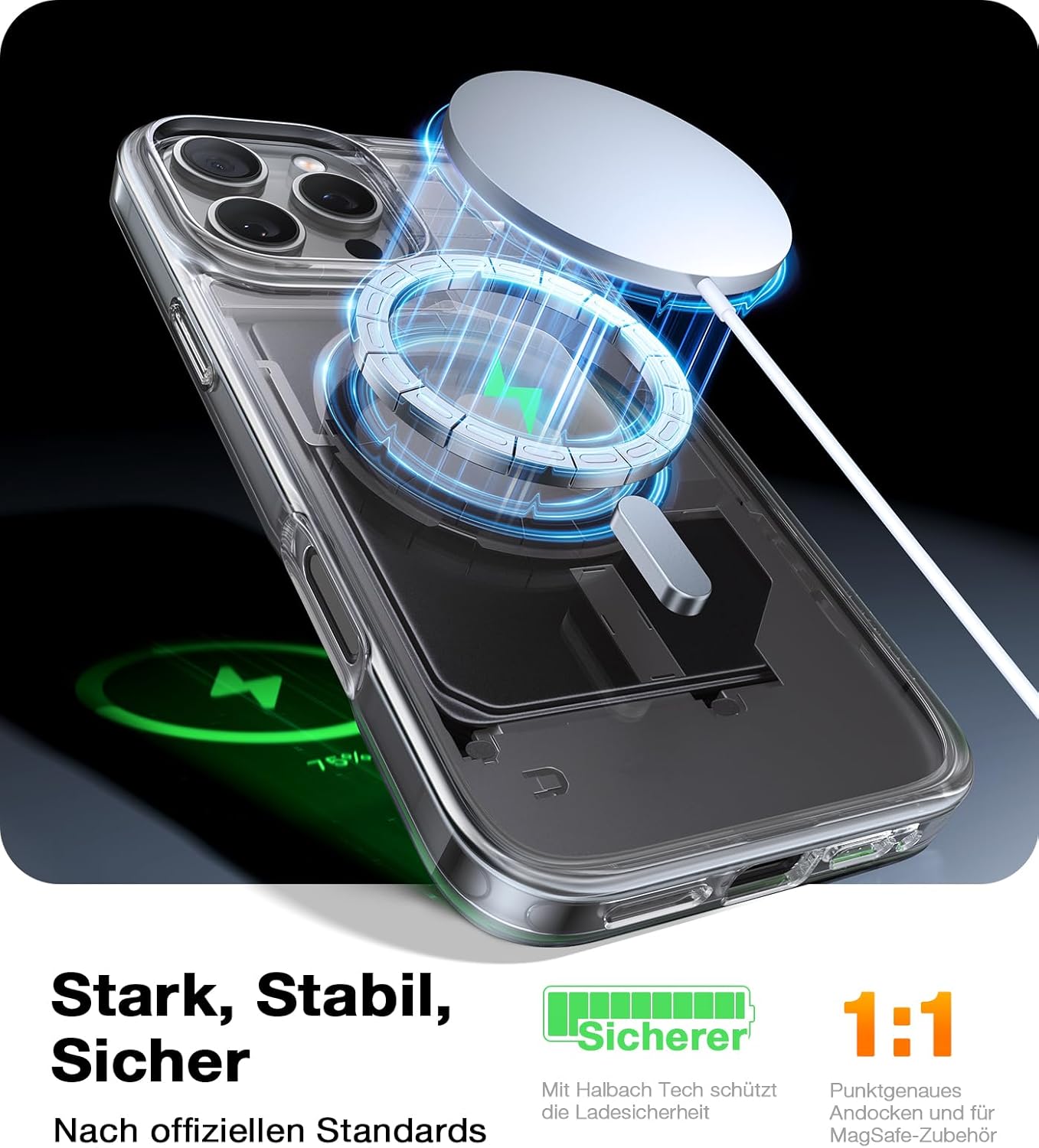 • Професионалното магнитно решение: Пробив в магнитната сила: Надстройте до редкоземни магнити N52 със сила на залепване от 18 N – надвишава оригиналната производителност; Интелигентно управление на заряда: Патентованата конструкция на магнитното поле намалява загубата на енергия с 15% при безжично зареждане и минимизира генерирането на топлина; Надеждна връзка: Перфектна съвместимост със зарядни устройства MagSafe, стойки за кола и други – за сигурно задържане в ежедневието и при пътуване.