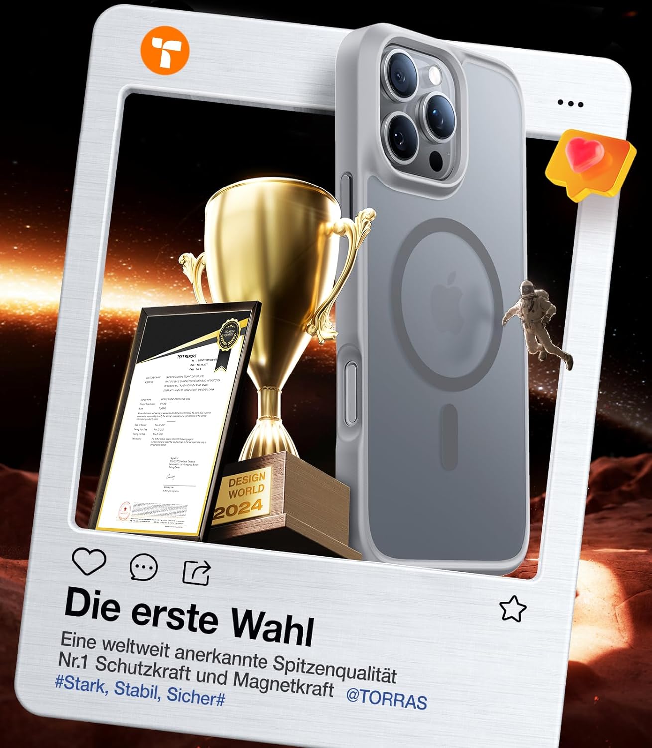 • Серията TORRAS Guardian-Mag – индустриалният еталон с над 13 милиона продажби по целия свят: Версията за iPhone 17 Pro съчетава три революционни основни технологии: редкоземни магнити N52 с водеща в индустрията сила на задържане от 18 N; система Military Airbag 4.0 + иновативен термопластичен полиуретанов (TPU)/термопластичен еластомер (TPE), сертифициран за защита от падане от 4 м; немски прецизен дизайн: ултратънък полупрозрачен гръб с дебелина 1,1 мм с G3 нано-захващащи ръбове за перфектно усещане.