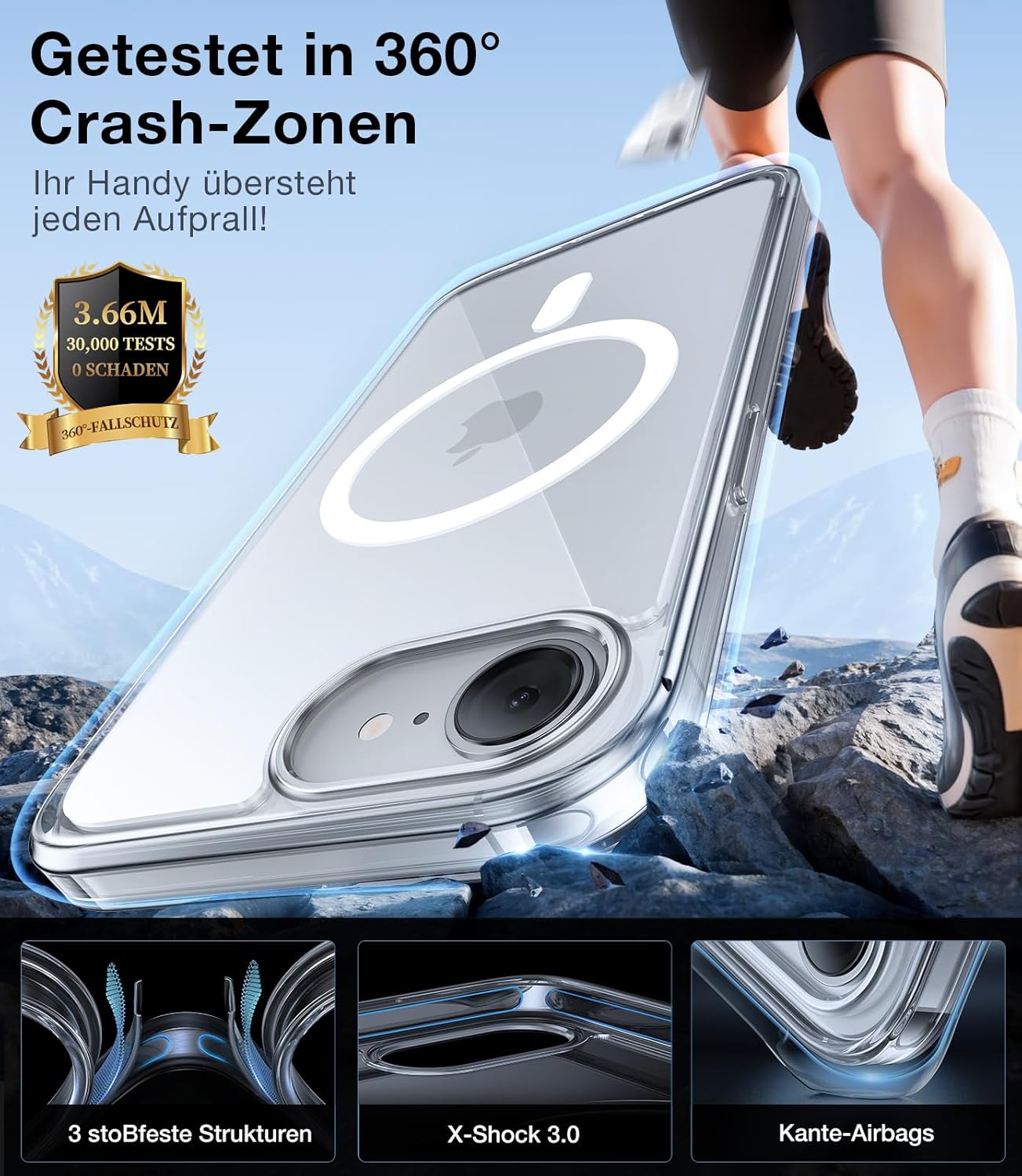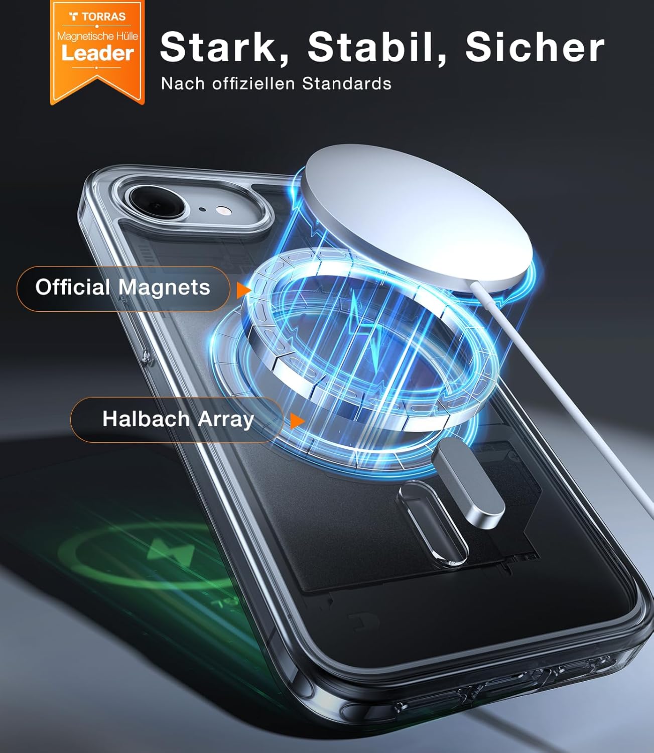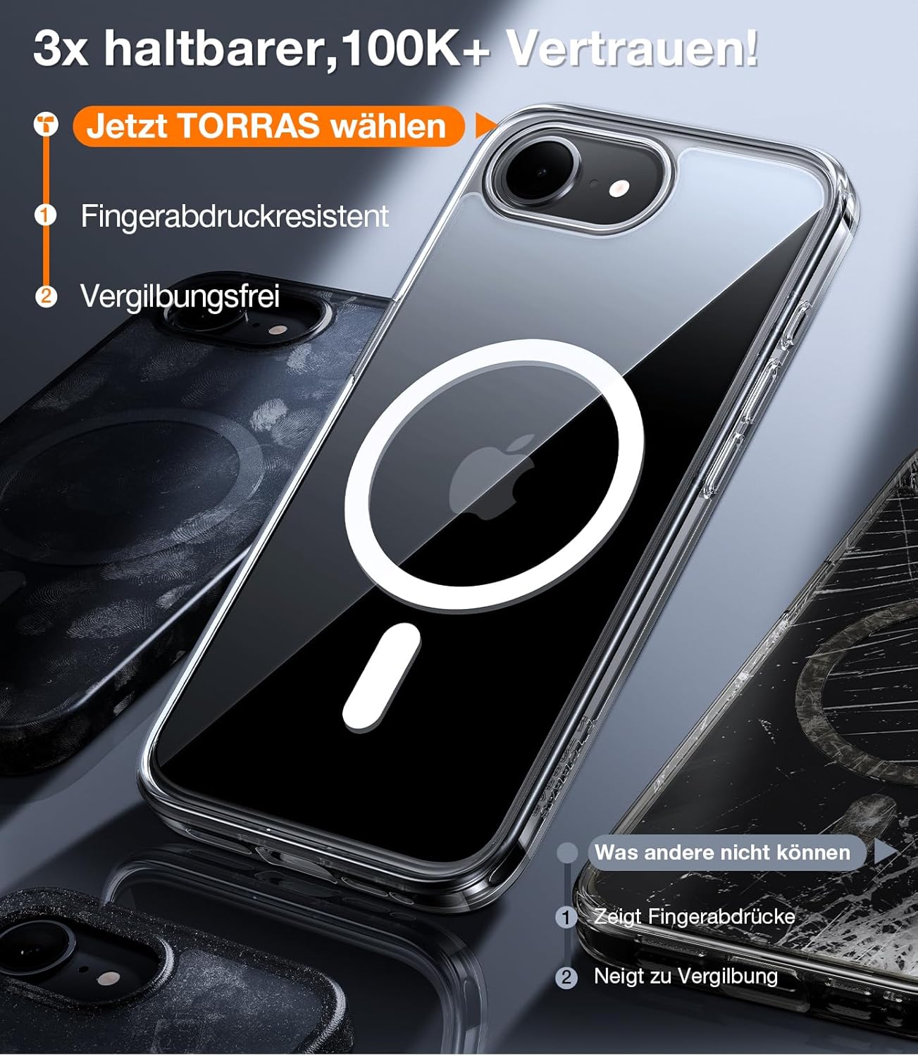 TORRAS Guardian-Mag калъф за iPhone 16e за MagSafe мобилен телефон калъф за iPhone 16e 2025 (сертифицирана военна защита и магнитна сила) за iPhone 16e 2025 защитен калъф, тънък, прозрачен
