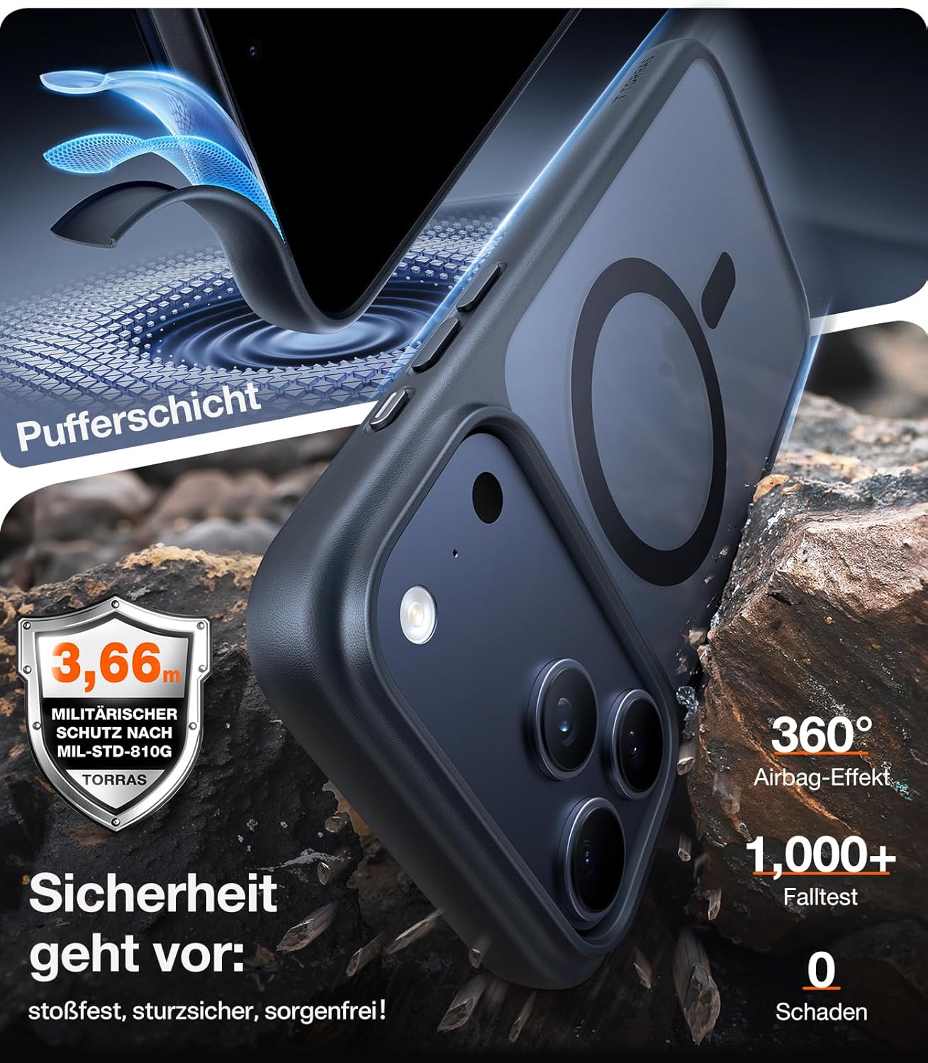 TORRAS Guardian-Mag калъф за iPhone 17 Pro Max с MagSafe (най-добра военна защита и магнитна сила) с бутон за камера, защитен калъф, удароустойчив, устойчив на надраскване, тънък калъф за мобилен телефон