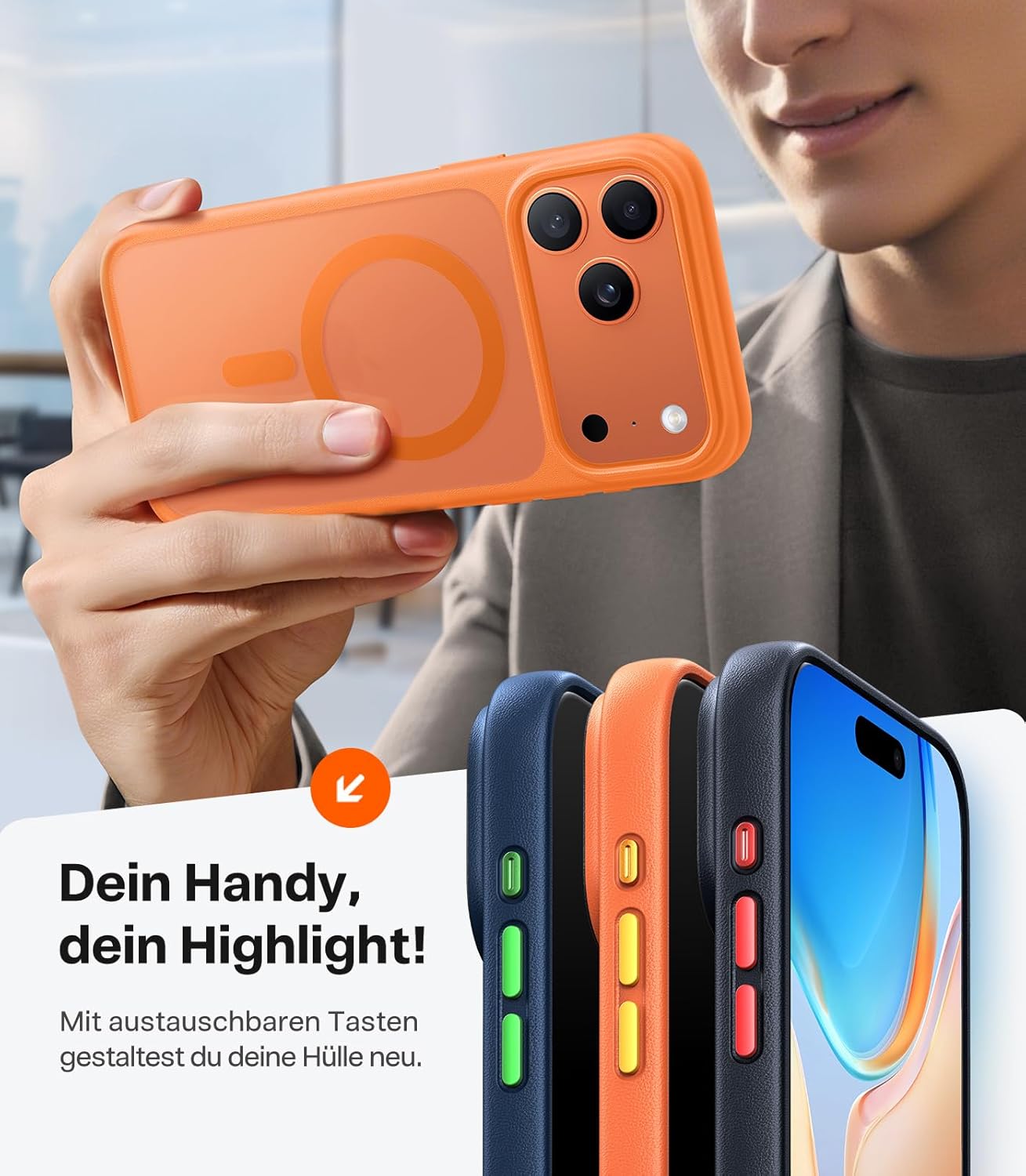 • Перфектни детайли за отлично качество: Калъфът за iPhone 17 Pro впечатлява с 45% пропускливост на светлина за елегантен дизайн и иновативна 3D лазерна текстура с нано покритие за първокласен комфорт при захващане. Подобрените метални бутони за изключване на звука реагират по-бързо, а модулният дизайн позволява персонализирани цветови комбинации. А прецизните изрези отразяват претенцията на TORRAS за съвършенство – перфектната комбинация от стил и функционалност.