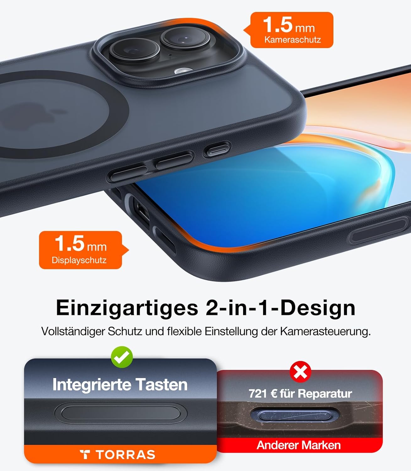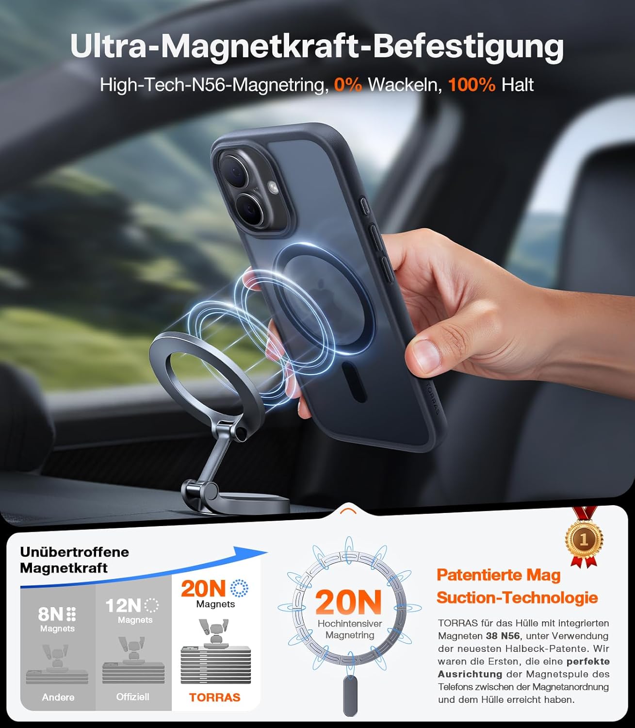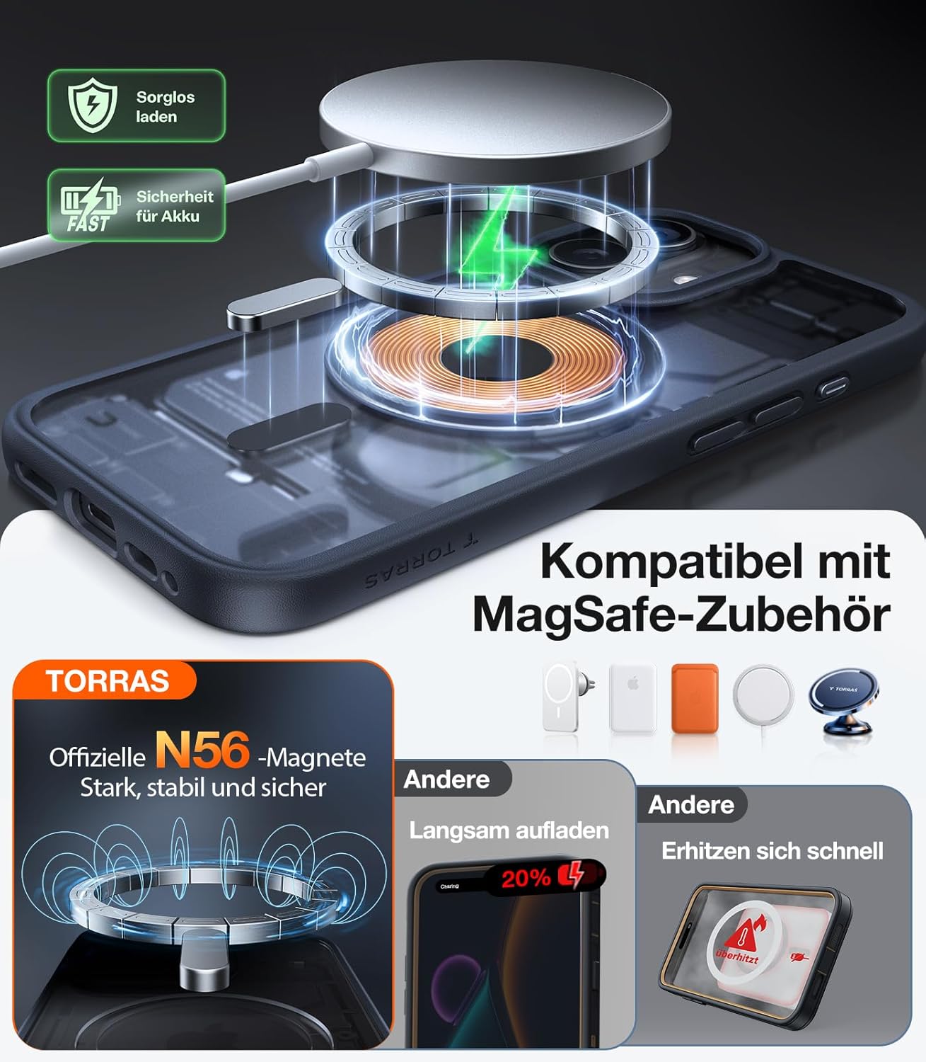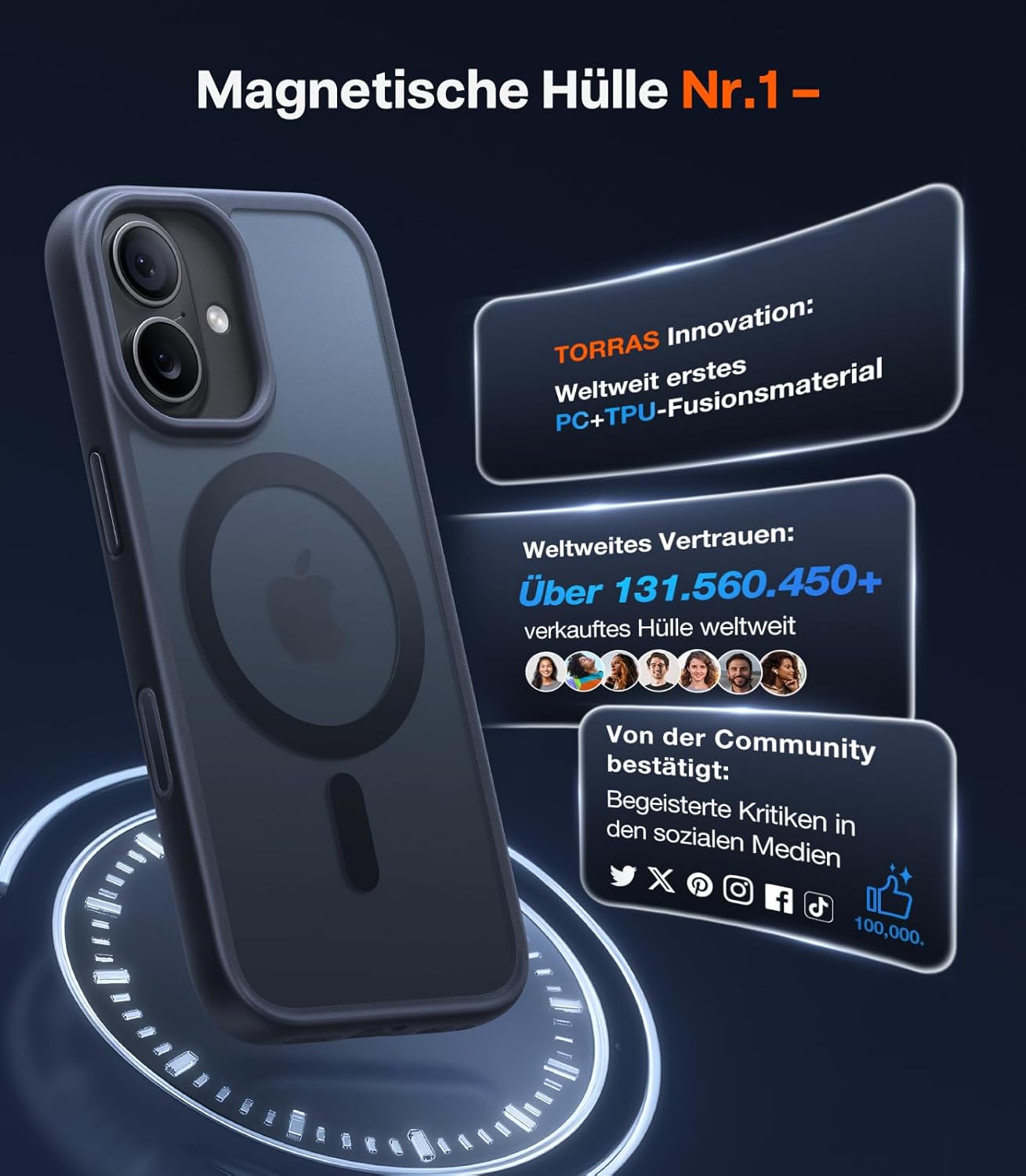 • Серията TORRAS Guardian-Mag – индустриалният еталон с над 13 милиона продажби по целия свят: Версията за iPhone 17 Pro съчетава три революционни основни технологии: редкоземни магнити N52 с водеща в индустрията сила на задържане от 18 N; система Military Airbag 4.0 + иновативен термопластичен полиуретанов (TPU)/термопластичен еластомер (TPE), сертифициран за защита от падане от 4 м; немски прецизен дизайн: ултратънък полупрозрачен гръб с дебелина 1,1 мм с G3 нано-захващащи ръбове за перфектно усещане.