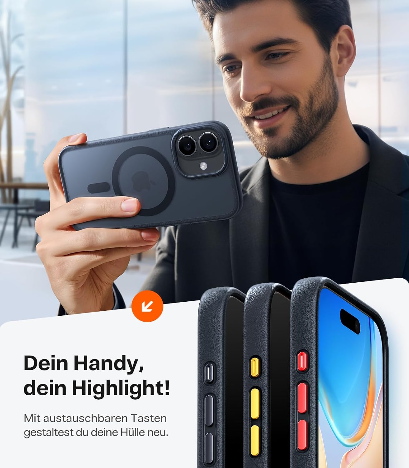 • Перфектни детайли за отлично качество: Калъфът за iPhone 17 Pro впечатлява с 45% пропускливост на светлина за елегантен дизайн и иновативна 3D лазерна текстура с нано покритие за първокласен комфорт при захващане. Подобрените метални бутони за изключване на звука реагират по-бързо, а модулният дизайн позволява персонализирани цветови комбинации. А прецизните изрези отразяват претенцията на TORRAS за съвършенство – перфектната комбинация от стил и функционалност.