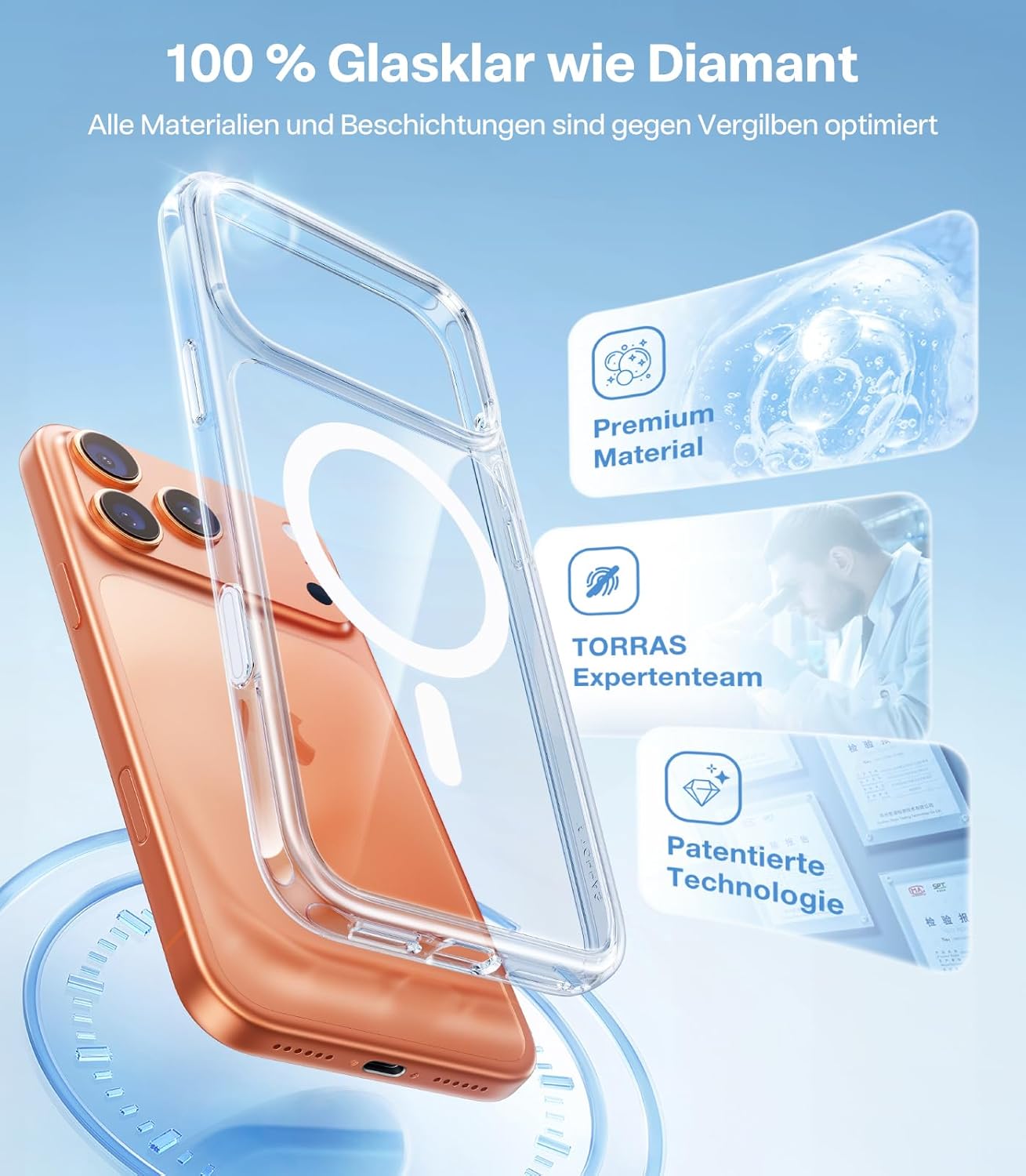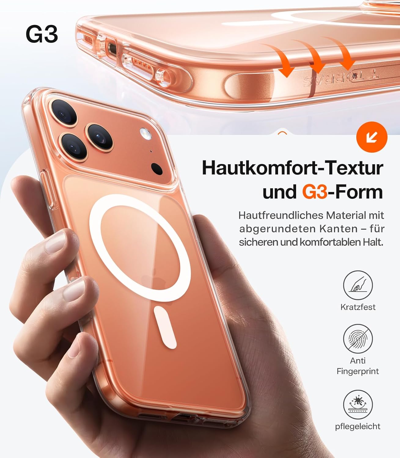 • Серията TORRAS Guardian-Mag – индустриалният еталон с над 13 милиона продажби по целия свят: Версията за iPhone 17 Pro съчетава три революционни основни технологии: редкоземни магнити N52 с водеща в индустрията сила на задържане от 18 N; система Military Airbag 4.0 + иновативен термопластичен полиуретанов (TPU)/термопластичен еластомер (TPE), сертифициран за защита от падане от 4 м; немски прецизен дизайн: ултратънък полупрозрачен гръб с дебелина 1,1 мм с G3 нано-захващащи ръбове за перфектно усещане.