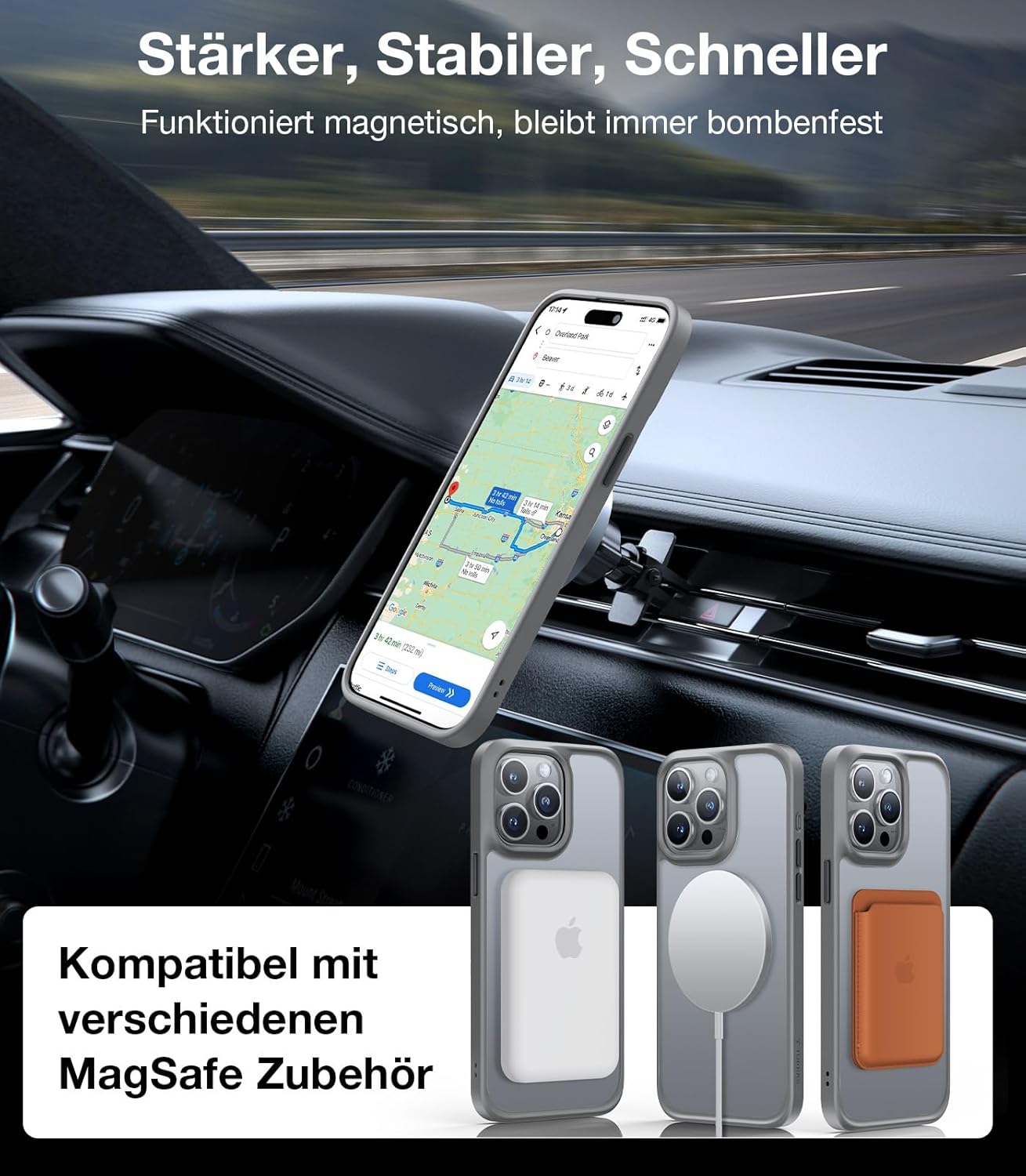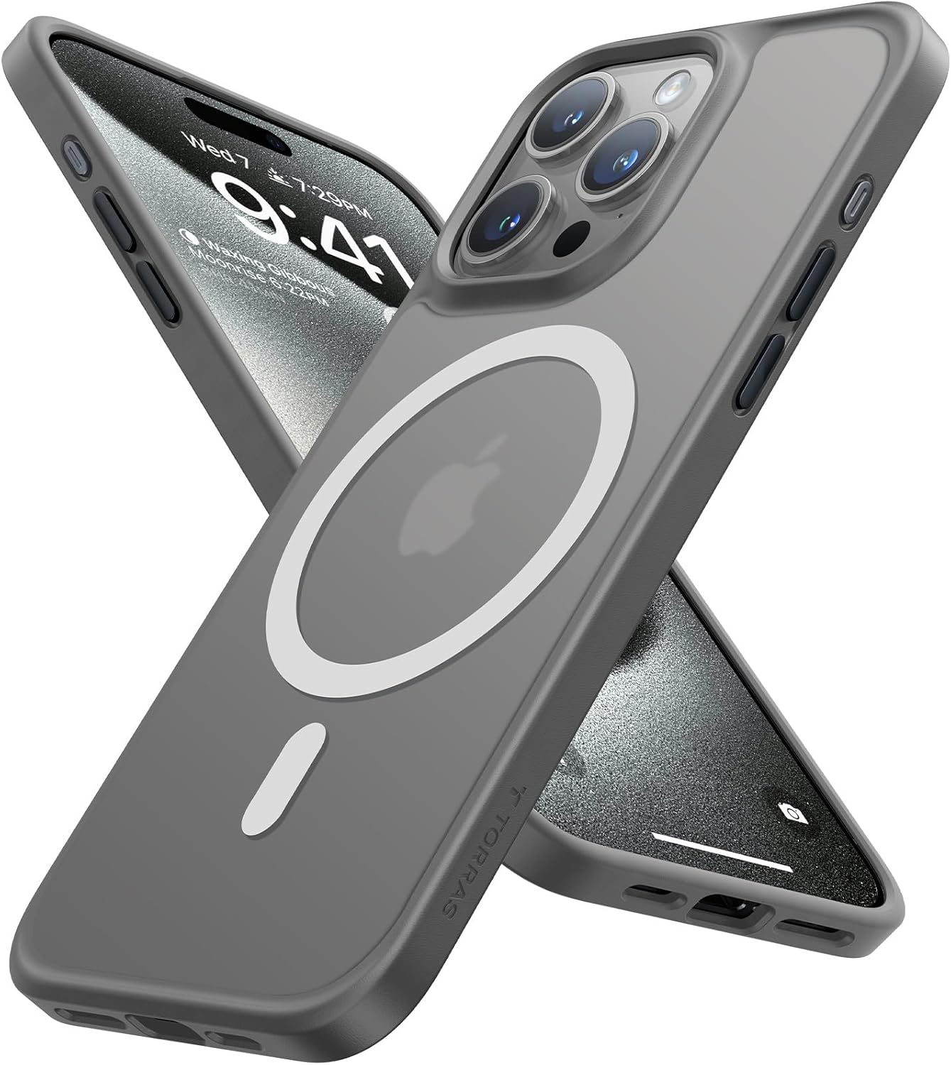 TORRAS Guardian-Mag за iPhone 15 Pro, калъф за MagSafe № 1, защитен, магнитен и защитен калъф за мобилен телефон за iPhone 15 Pro, удароустойчив, устойчив на надраскване, елегантен матово сив
