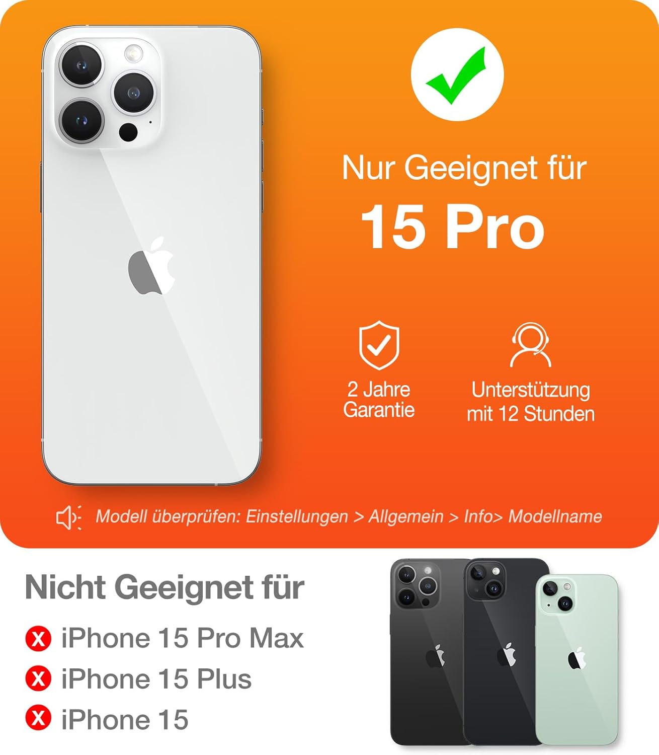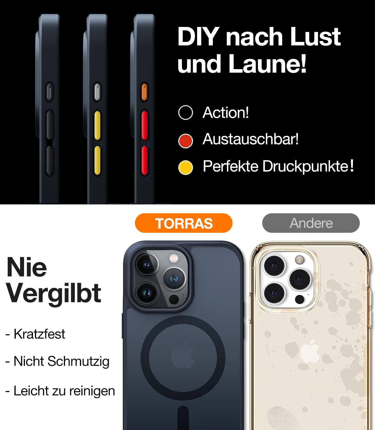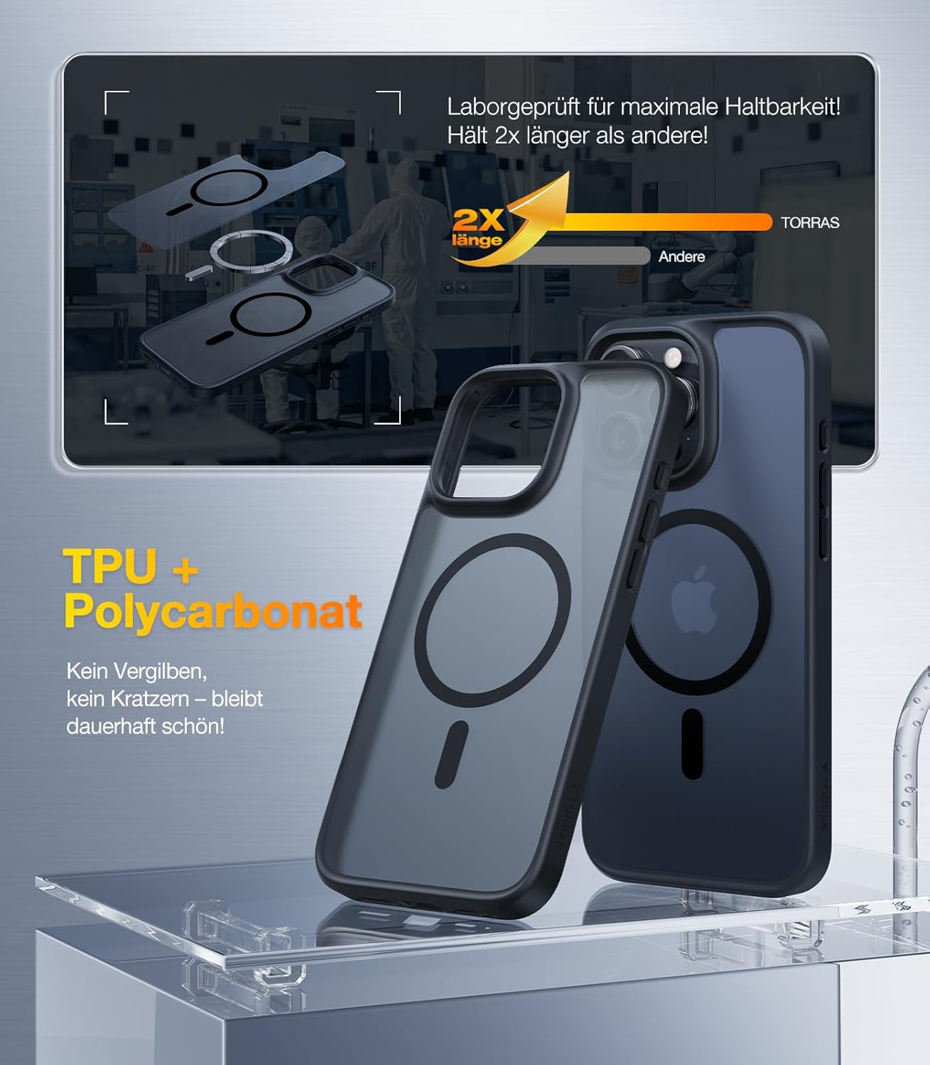 TORRAS Guardian-Mag за iPhone 15 Pro, калъф за MagSafe No.1 Protective Power and Magnetic Force, мобилен телефон, удароустойчив, устойчив на надраскване, защитен калъф, елегантен, матово черен