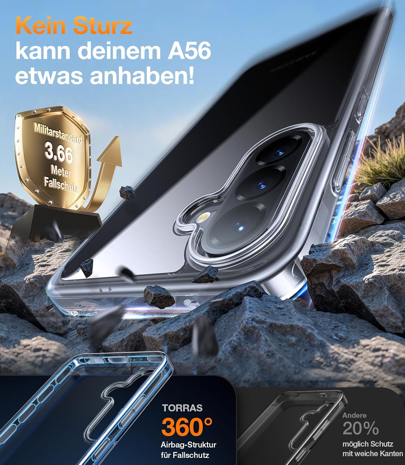 TORRAS Guardian Military Protection Case за Samsung Galaxy A56 5G с X-Shock Anti-Yellow калъф за мобилен телефон Samsung A56, устойчив на надраскване, удароустойчив защитен калъф за Samsung A56 5G, страхотно усещане