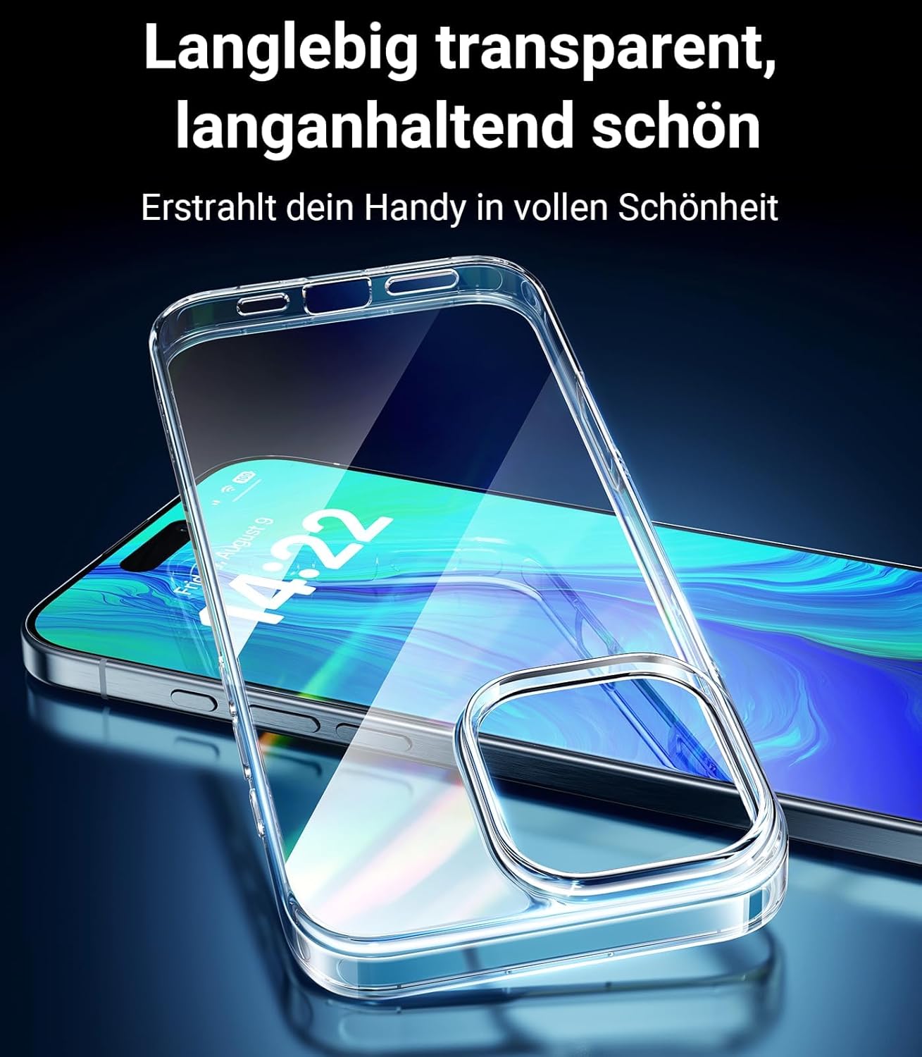 • Безупречна кристална яснота: Този калъф е специално проектиран за iPhone 16 Pro и винаги остава кристално прозрачен. Избрахме висококачествен силиконов материал, който обгръща вашия iPhone 16 Pro като втора кожа и перфектно подчертава оригиналния цвят и тънките линии на iPhone. Така можете да се насладите напълно на красотата на оригиналния дизайн на вашия телефон.
