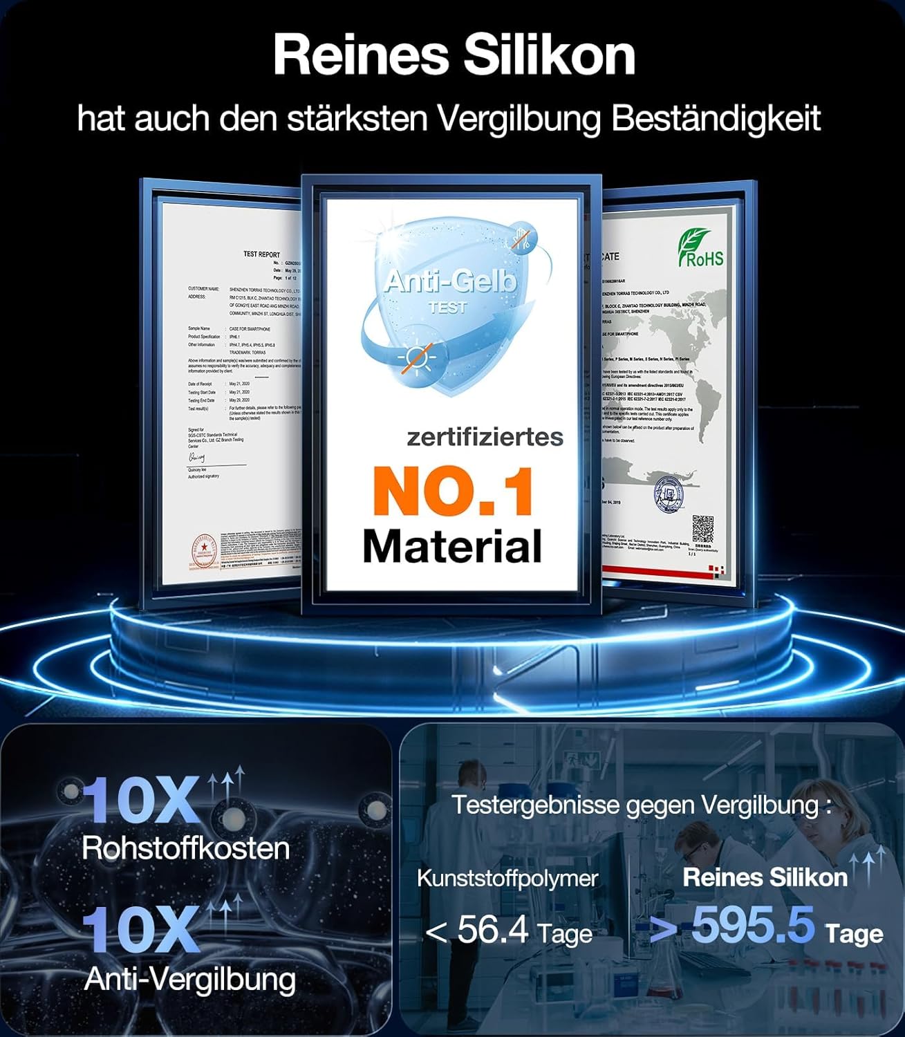 • Удароустойчив за допълнителна безопасност: Непредвидени инциденти могат да се случат по всяко време в ежедневието, но този калъф за iPhone 16 Pro ви предлага най-добрата защита. В случай на случайно падане, високоеластичният чист силикон образува малки въздушни възглавници, които омекотяват удара. Сякаш вашият iPhone се приземи върху въздушна възглавница и по този начин е перфектно защитен от повреди. С изключителната си устойчивост на удар, можете да използвате вашия iPhone без да се притеснявате.