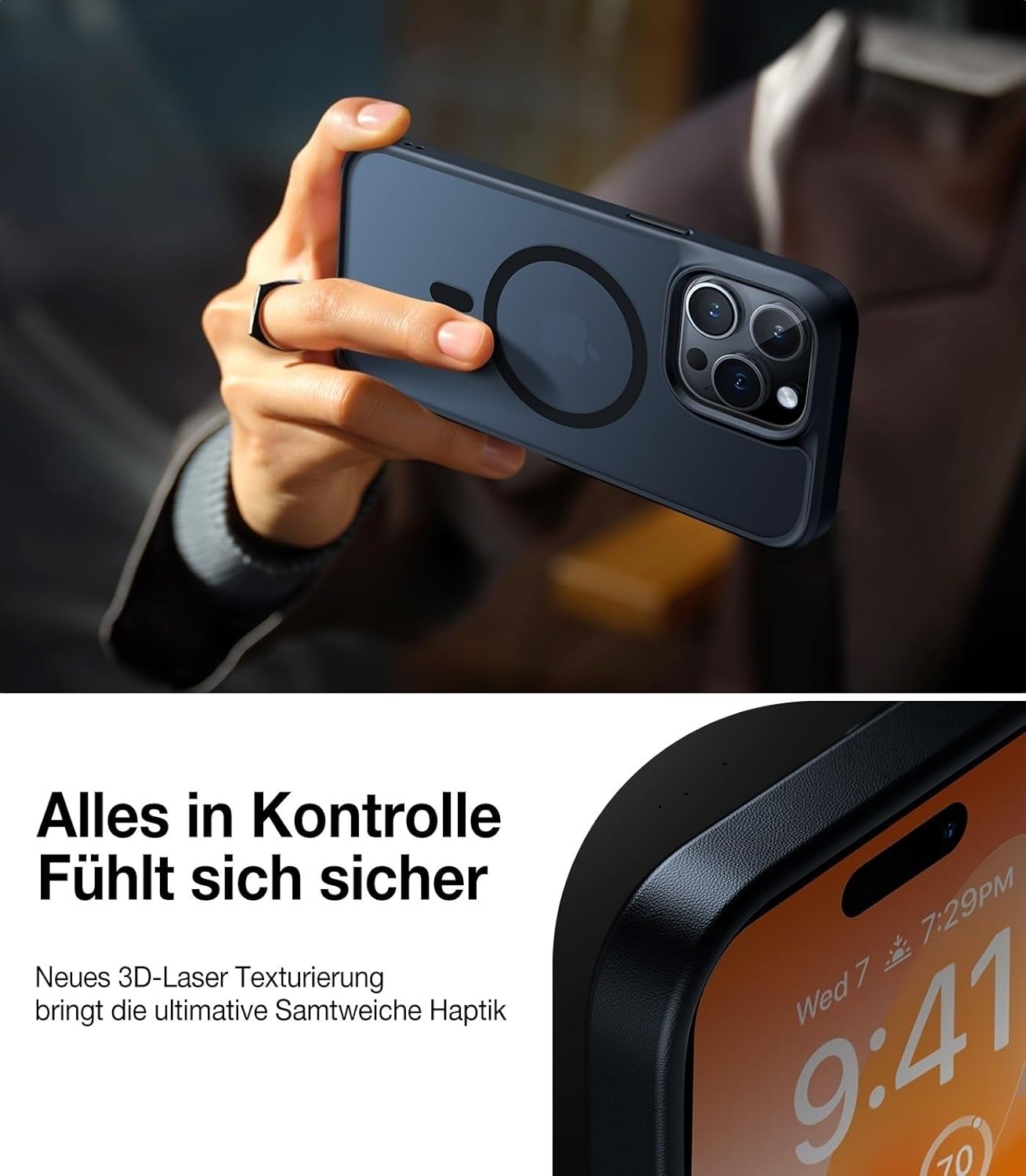 • Перфектни детайли за отлично качество: Калъфът за iPhone 17 Pro впечатлява с 45% пропускливост на светлина за елегантен дизайн и иновативна 3D лазерна текстура с нано покритие за първокласен комфорт при захващане. Подобрените метални бутони за изключване на звука реагират по-бързо, а модулният дизайн позволява персонализирани цветови комбинации. А прецизните изрези отразяват претенцията на TORRAS за съвършенство – перфектната комбинация от стил и функционалност.