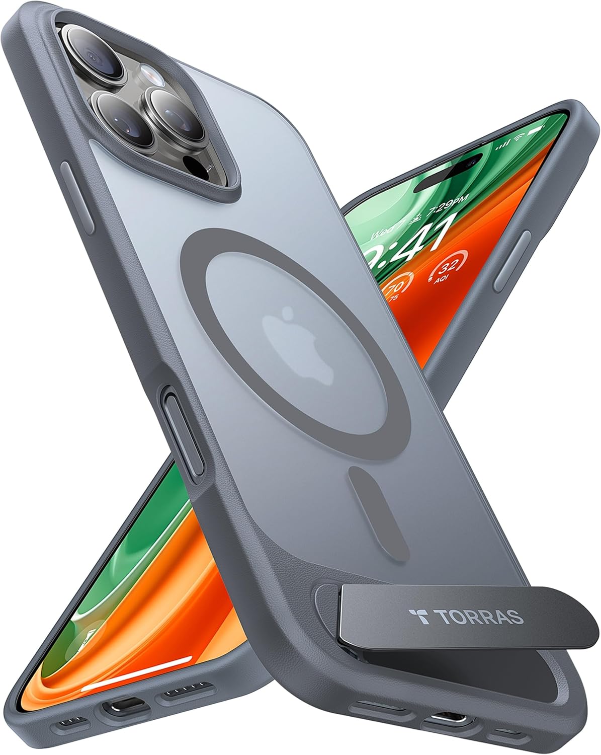 TORRAS Калъф за iPhone 16 Pro Max с MagSafe и титаниева стойка, сертифициран магнитен калъф, военна защита, за iPhone 16 Pro Max, удароустойчив, устойчив на надраскване и твърд калъф.