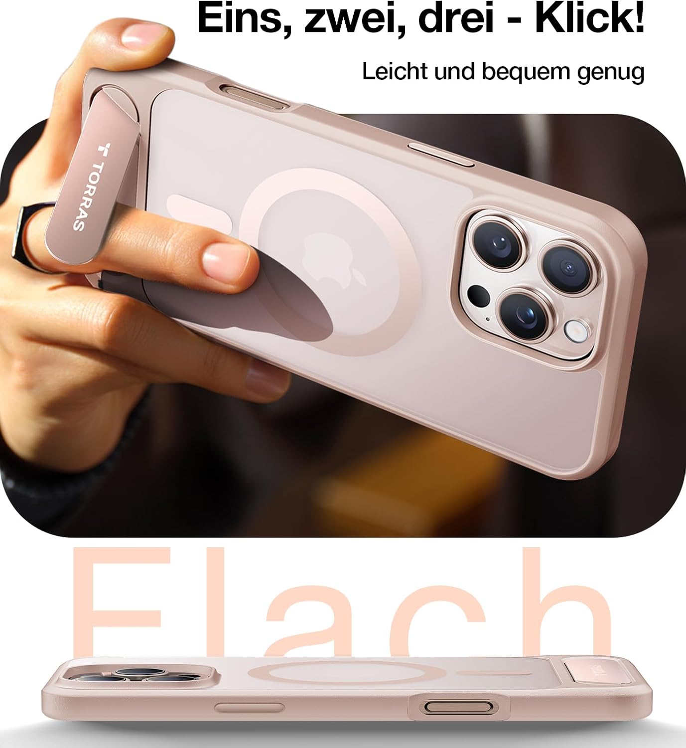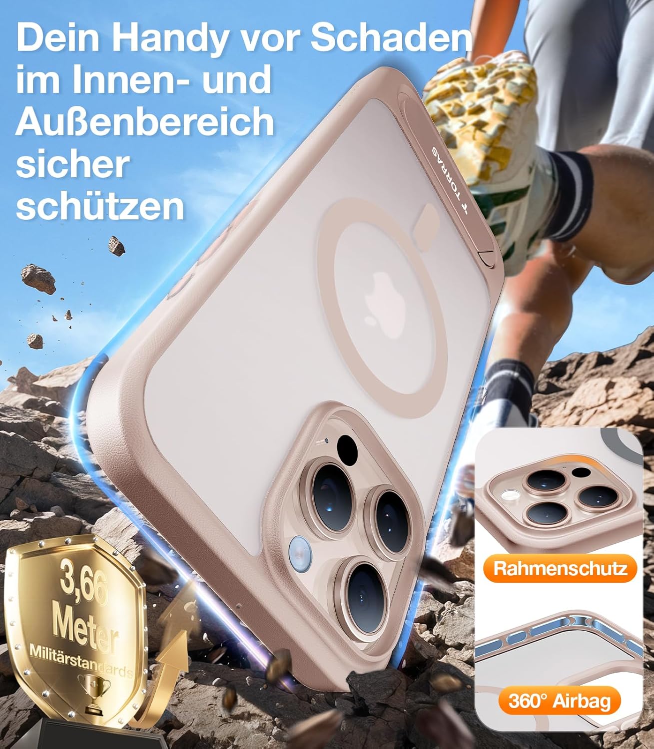 TORRAS Калъф за iPhone 16 Pro Max с MagSafe и титаниева стойка, сертифициран магнитен калъф, военна защита, за iPhone 16 Pro Max, удароустойчив, устойчив на надраскване и твърд калъф.