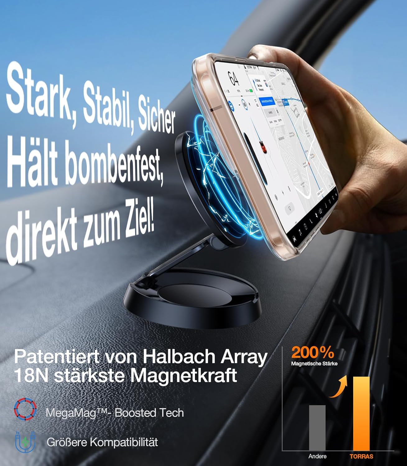 • Само магнити? Не - Магнитен с пълна функционалност. Дизайнът на магнитния пръстен пасва 1:1 на оригиналния магнитен пръстен на iPhone и е оборудван с патентованата система от магнити TORRAS Halbach, както и със силни магнити N52. Така че калъфът за мобилен телефон за iPhone 17 Pro се залепва здраво към оригинални магнитни аксесоари като държачи за кола, външни батерии или зарядни устройства, здраво задържащ, щадящ батерията. Бързо зареждане: Няма проблем - стабилно прилягане, без забавяне.