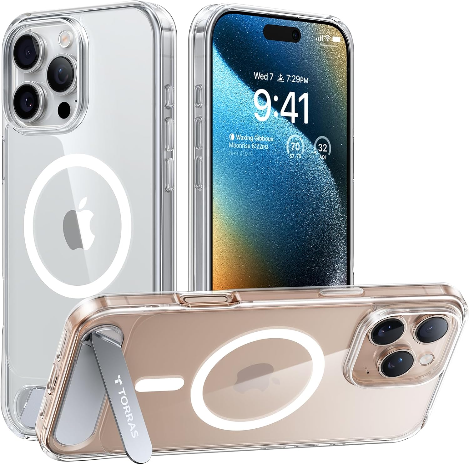TORRAS Калъф за iPhone 16 Pro с MagSafe и титаниева стойка тип „крило“, сертифицирана магнитна сила, военна защита, калъф за мобилен телефон, калъф за iPhone 16 Pro, удароустойчив, устойчив на надраскване, твърд калъф