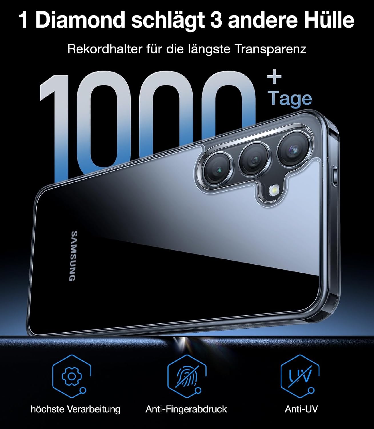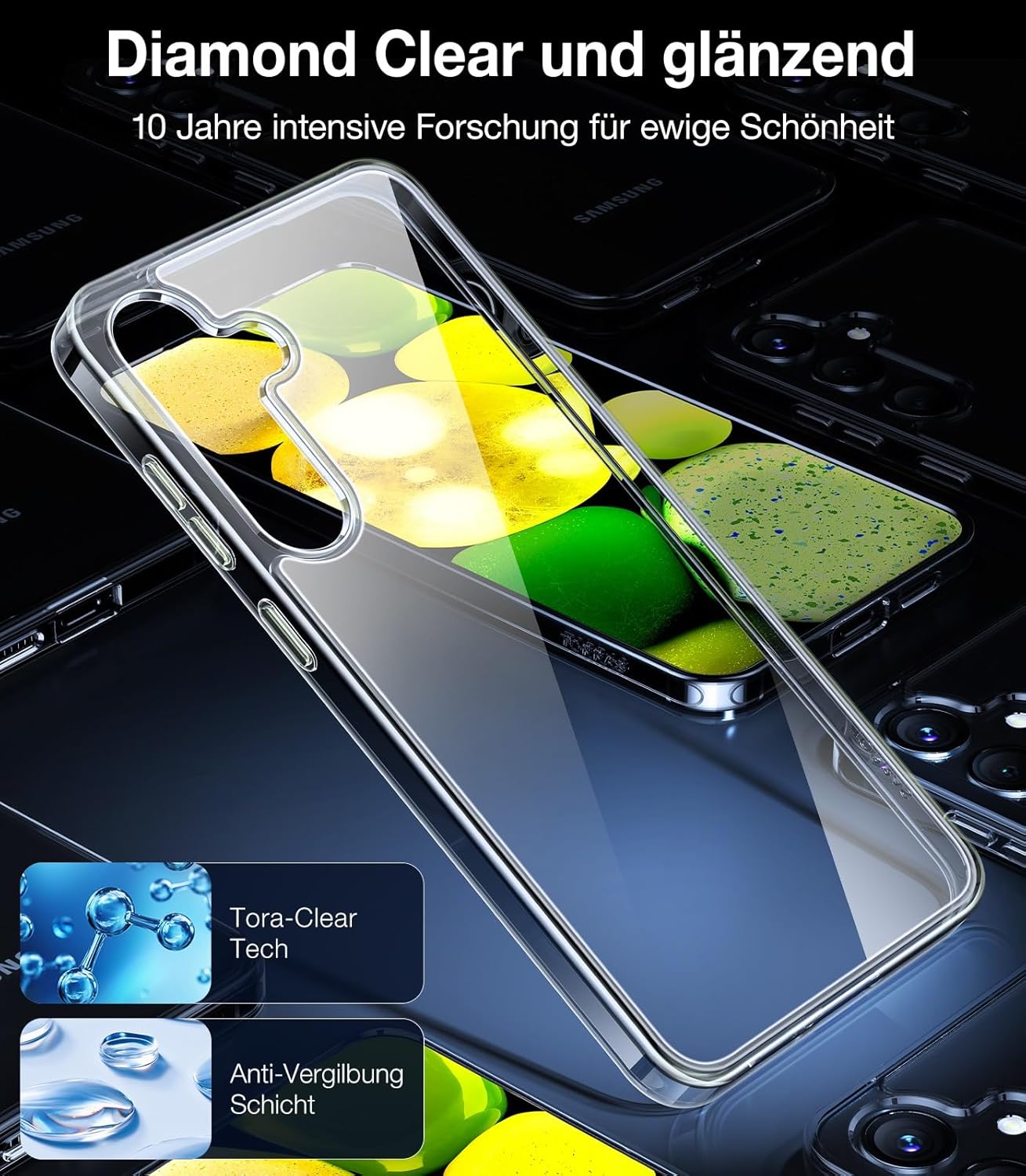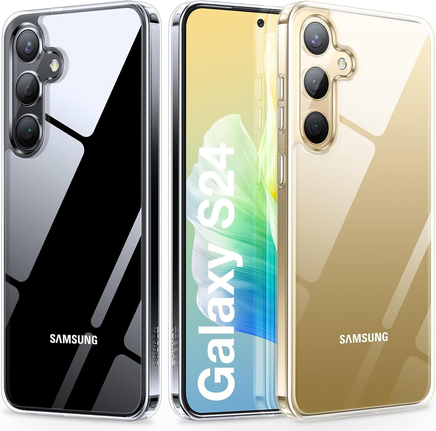TORRAS Кейс за Samsung Galaxy S24, анти-пожълтяване, с военно ниво защита от падане с въздушни възглавници, калъф за мобилен телефон, удароустойчив и устойчив на надраскване, калъф за S24, серия Diamond - прозрачен