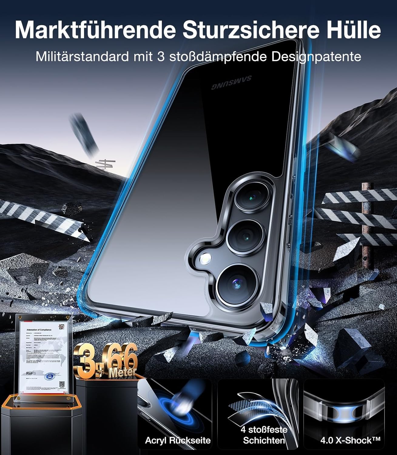 • [№ 1 Военна защита, предпазва при всяко падане] Все още ли се притеснявате, че телефонът ви ще се счупи в случай на падане? Не се притеснявайте! Този калъф за Samsung S25 Ultra използва ексклузивна технология X-Shock 3.0 и професионално защитава четирите ъгъла. С вградена 360° възглавница за абсорбиране на удара, той абсорбира 92,5% от силата на удара. След над 2500 падания от височина 3,66 м, той остава непокътнат - за максимална защита и безпроблемни падания.
