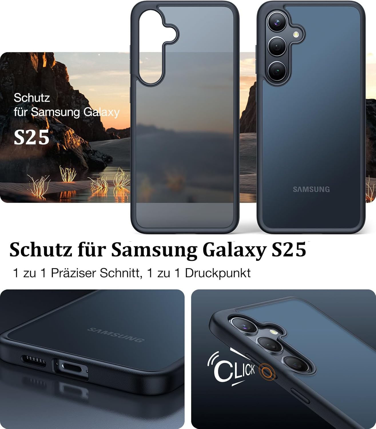 TORRAS Кейс за Samsung Galaxy S25 [Най-висока военна защита] с 360° въздушни възглавници, Удароустойчив, Устойчив на надраскване, Кадифено меко усещане, Калъф за мобилен телефон, Защитен калъф, Издръжлив калъф, Черен, Guardian