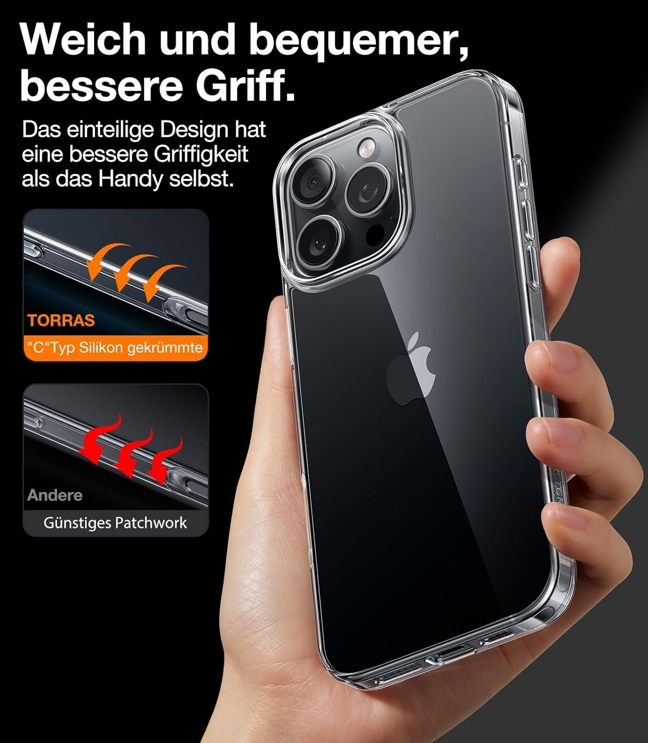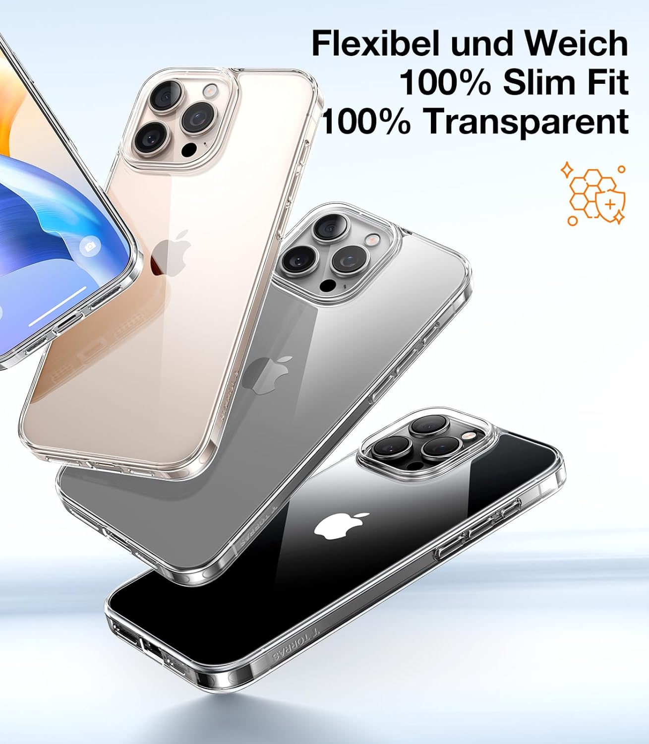• Безупречна кристална яснота: Този калъф е специално проектиран за iPhone 16 Pro и винаги остава кристално прозрачен. Избрахме висококачествен силиконов материал, който обгръща вашия iPhone 16 Pro като втора кожа и перфектно подчертава оригиналния цвят и тънките линии на iPhone. Така можете да се насладите напълно на красотата на оригиналния дизайн на вашия телефон.