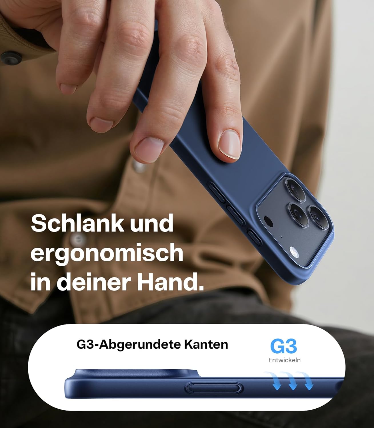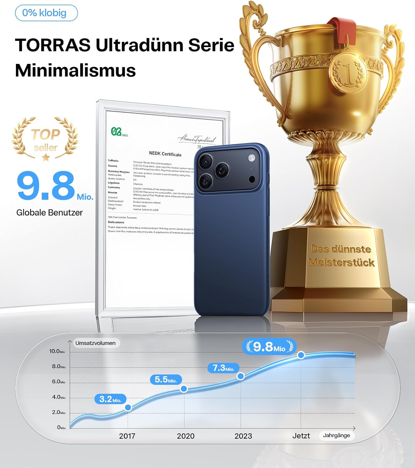 TORRAS Master of Thinness, Калъф за мобилен телефон за iPhone 17 Pro Max, Цялостна защита, Отлично кадифено захващане като оригинала, Тънък, Син