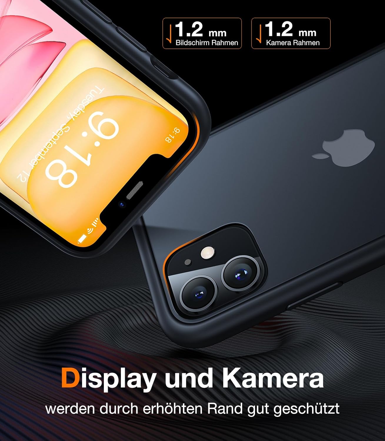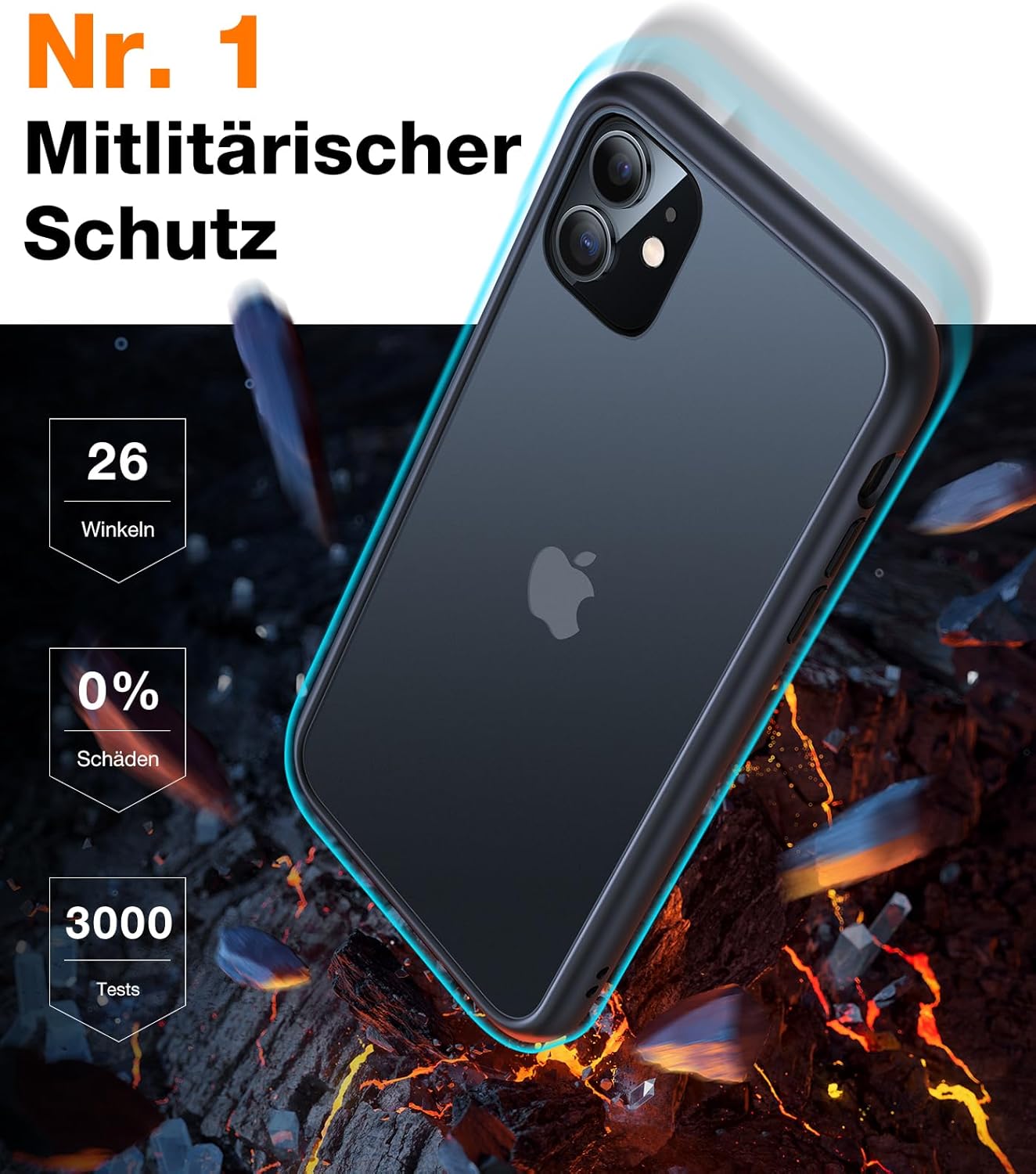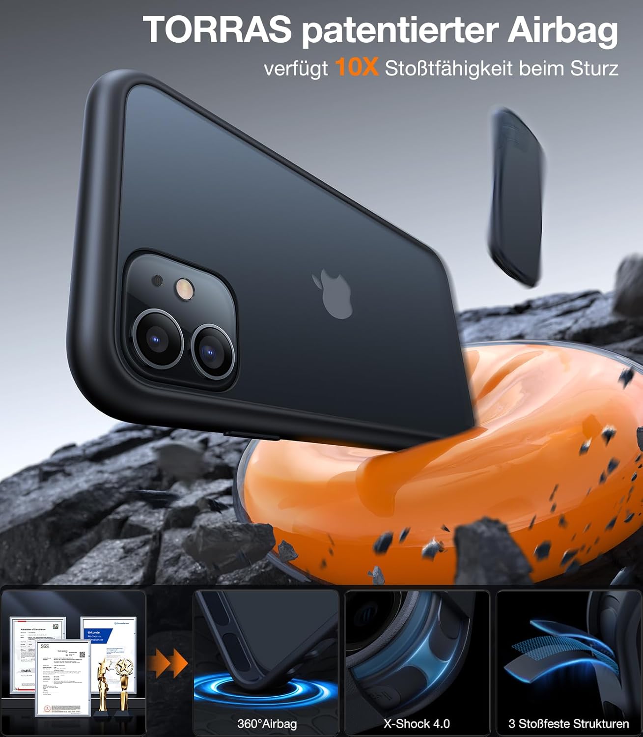 Torras Military калъф за iPhone 11 с противоударна въздушна възглавница, калъф за мобилен телефон, удароустойчив и устойчив на надраскване, издръжлив, красив на допир, черен