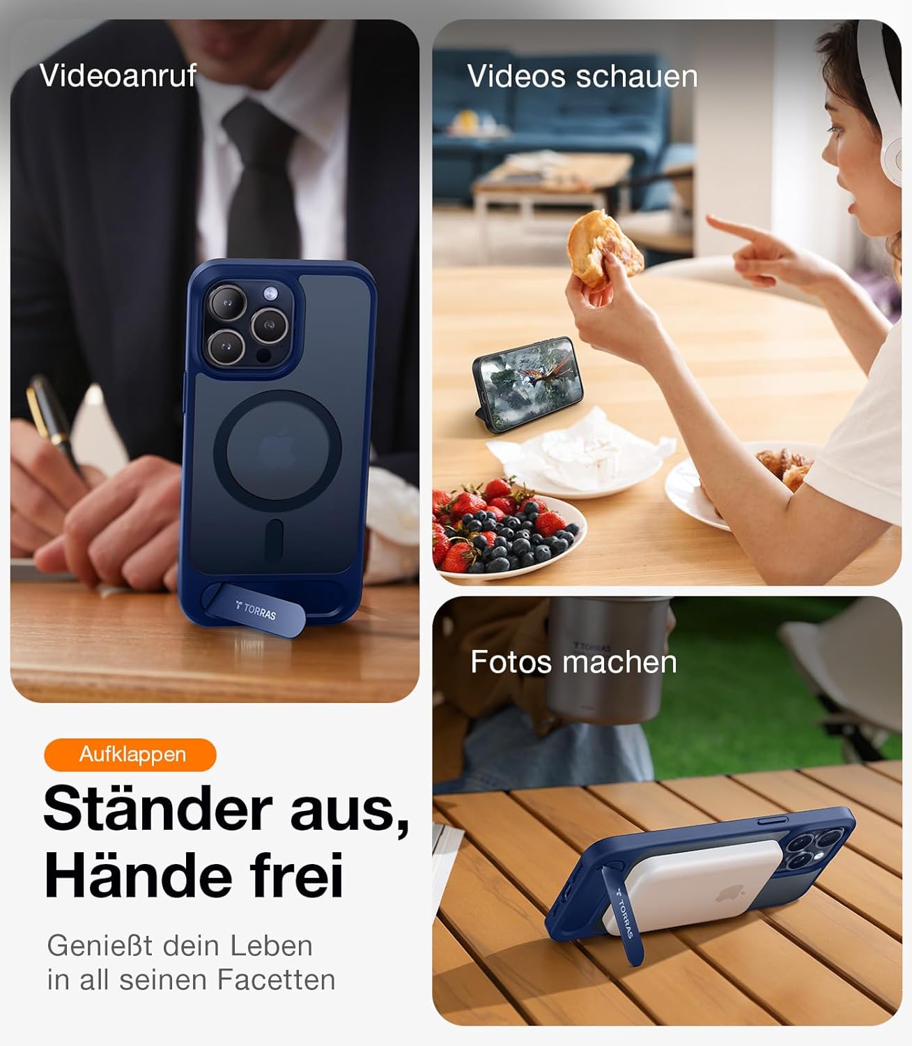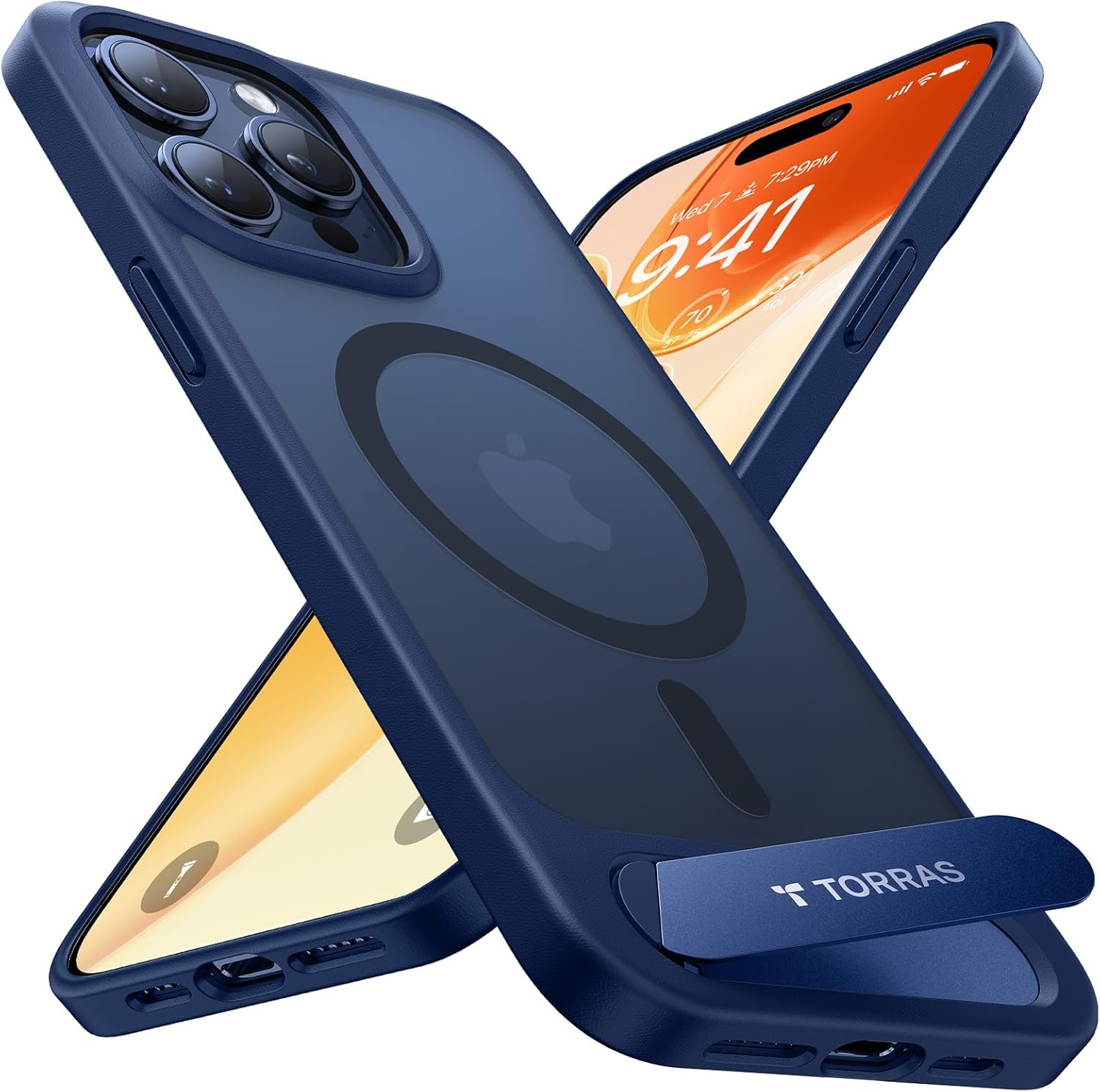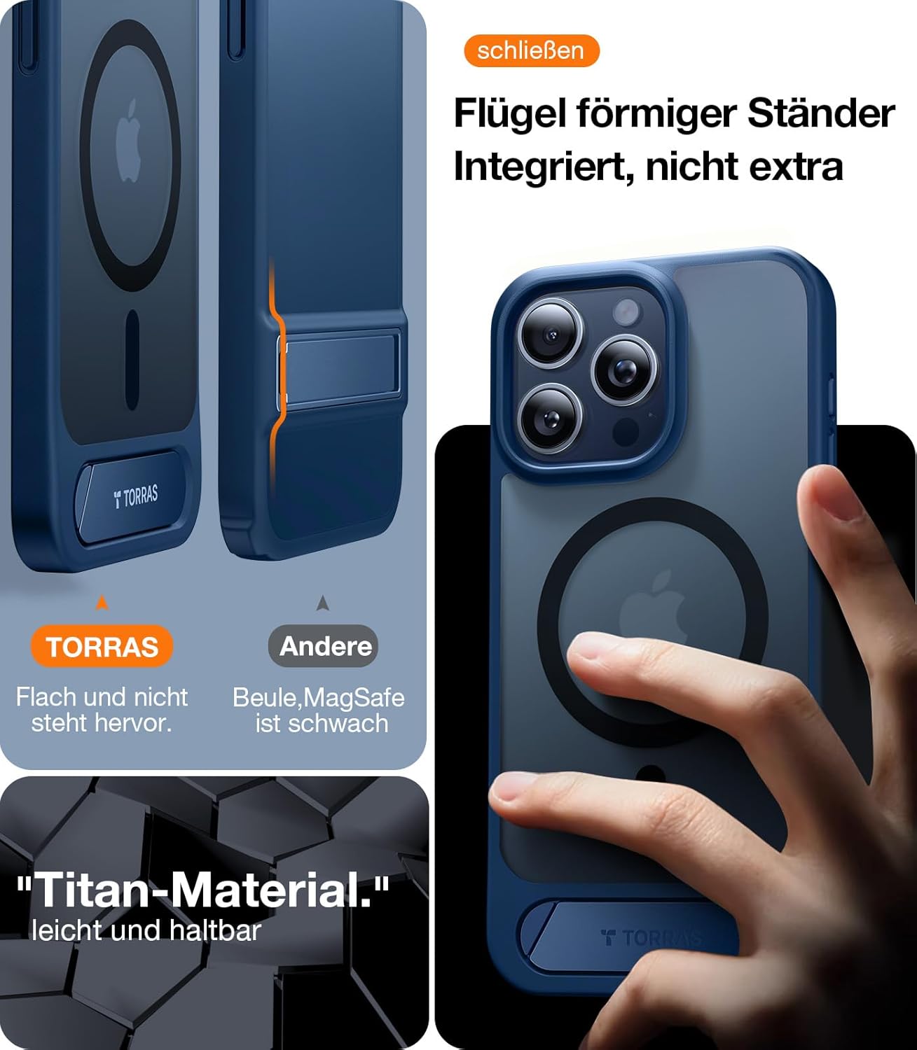 TORRAS Ostand L1 калъф за iPhone 15 Pro Max със стойка тип „крило“, съвместим с аксесоари MagSafe, 3,66 м, сертифициран с военна защита, удароустойчив магнитен калъф за мобилен телефон iPhone 15 Pro Max
